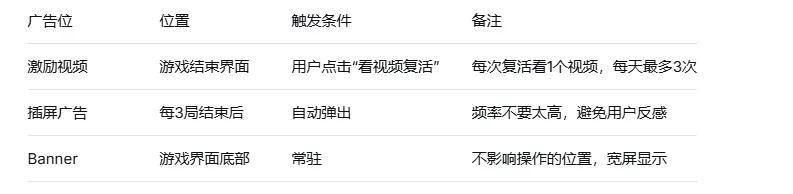 关键:广告位的位置和频率,立项时就要想清楚。那个广告放满了、用户全跑了的伙伴,就是吃了这个亏。