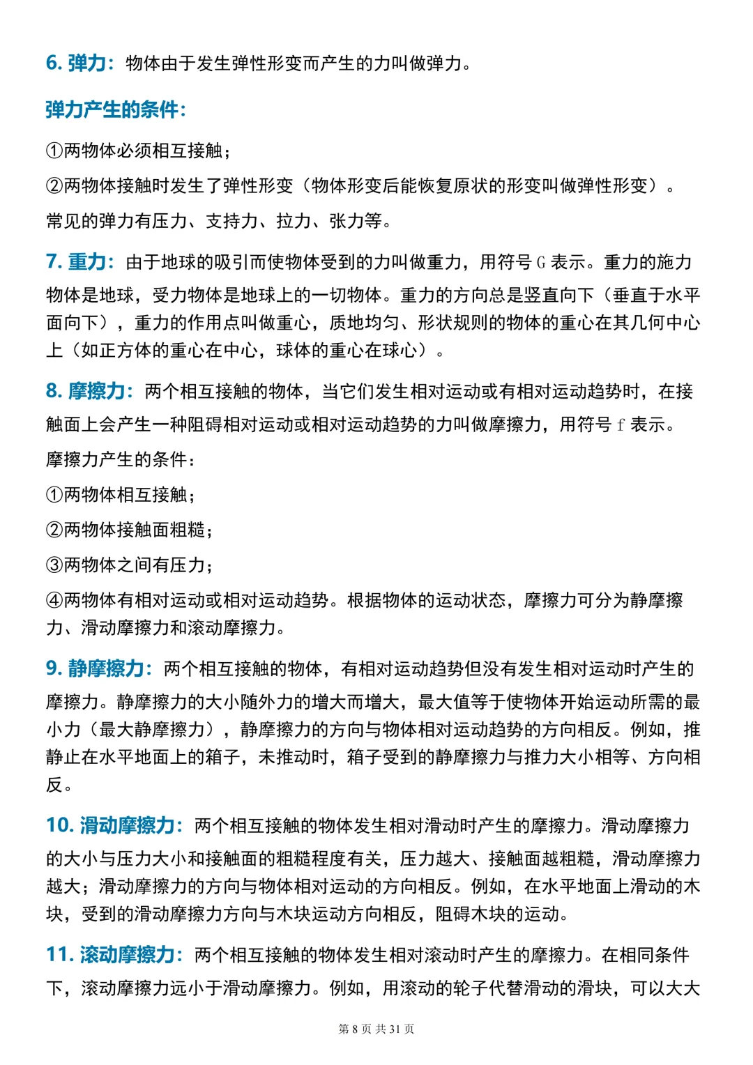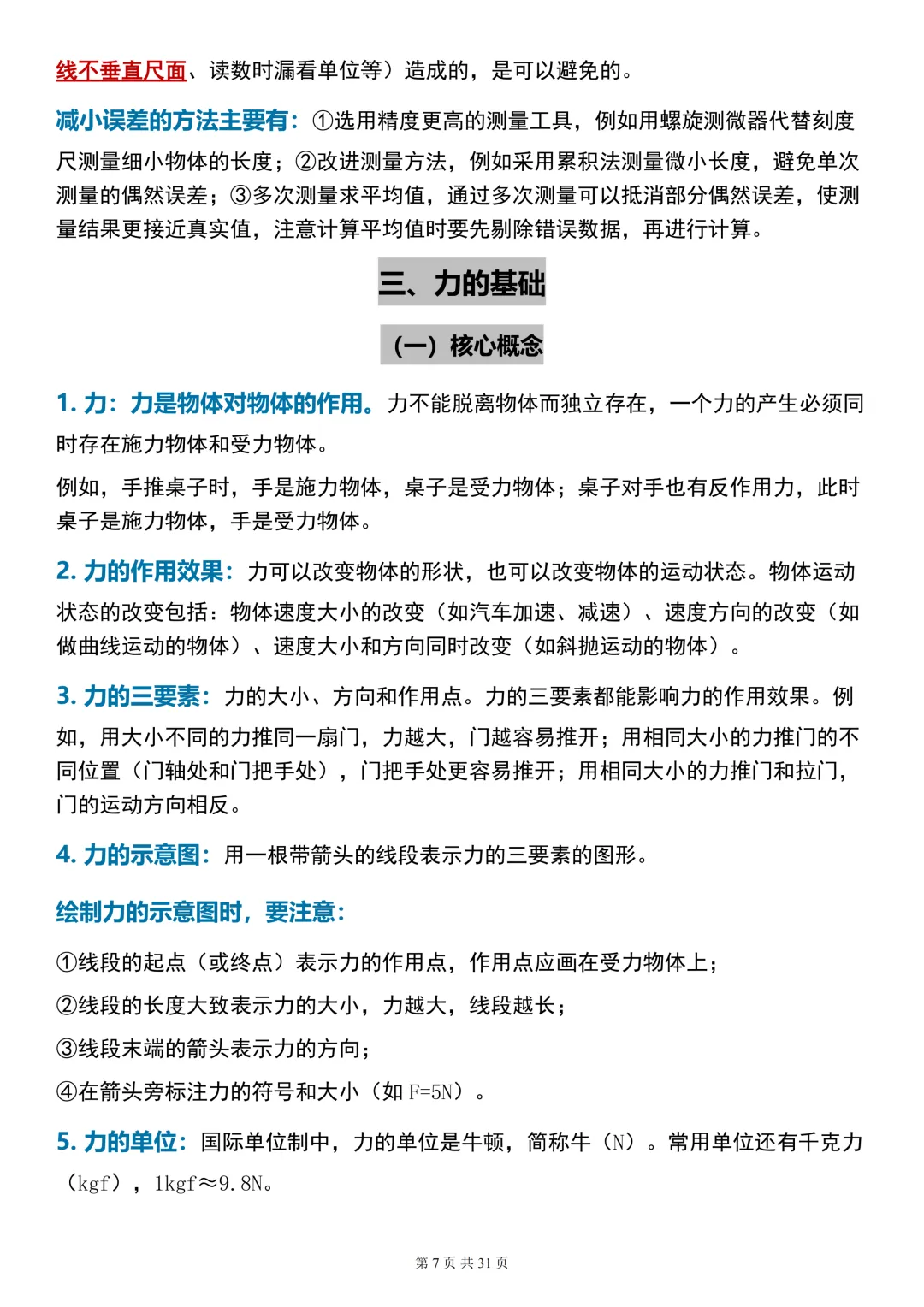 中考必背【初中物理核心力学基础】,可打印 快收藏