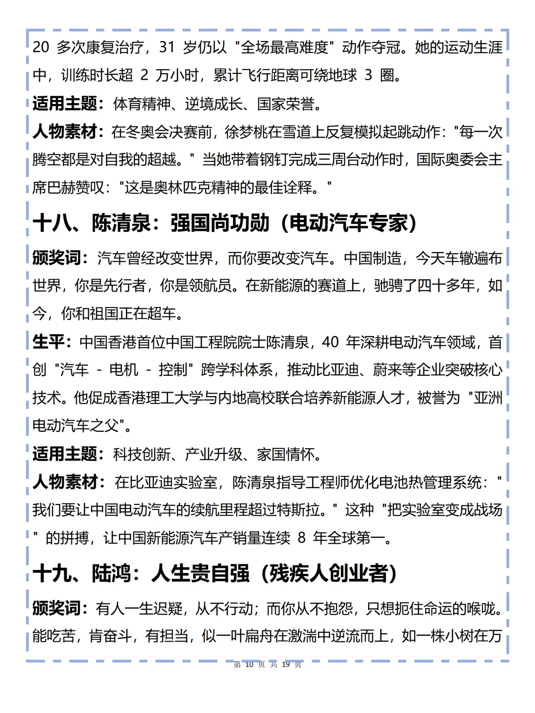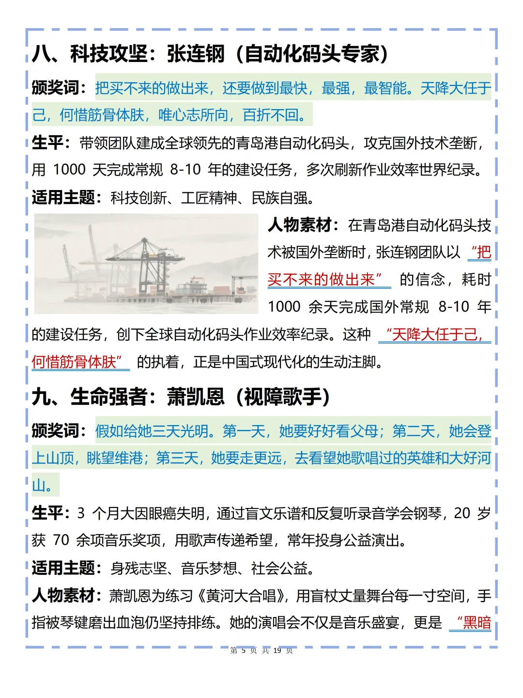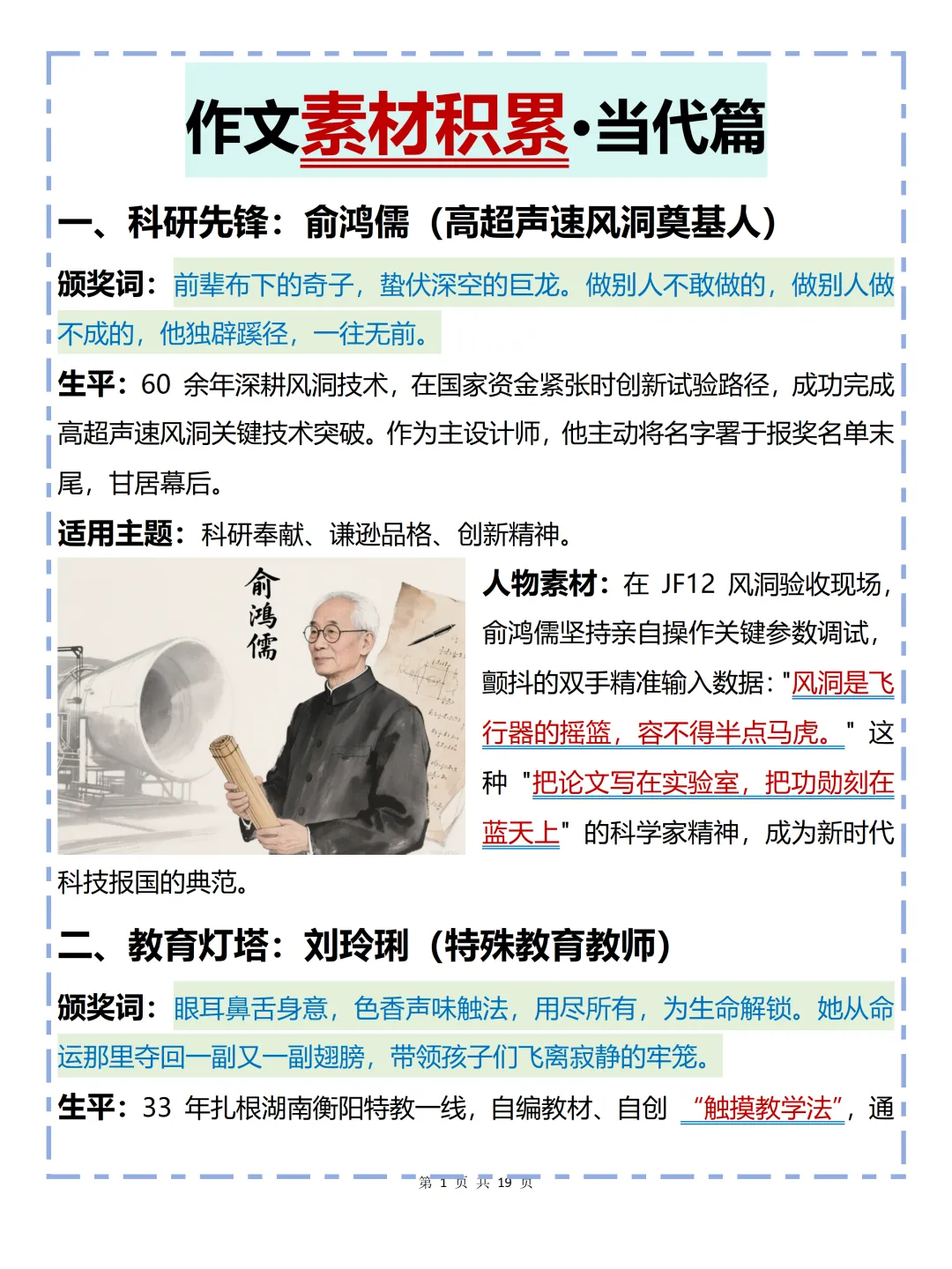 今天给大家整理了中考必备的【作文素材积累当代篇】,覆盖科技先锋、教育灯塔、体育精神等全场景常考话题,附详细典型人物与适用主题,不管题目如何变式,都能精准应对,轻松拿下高分!