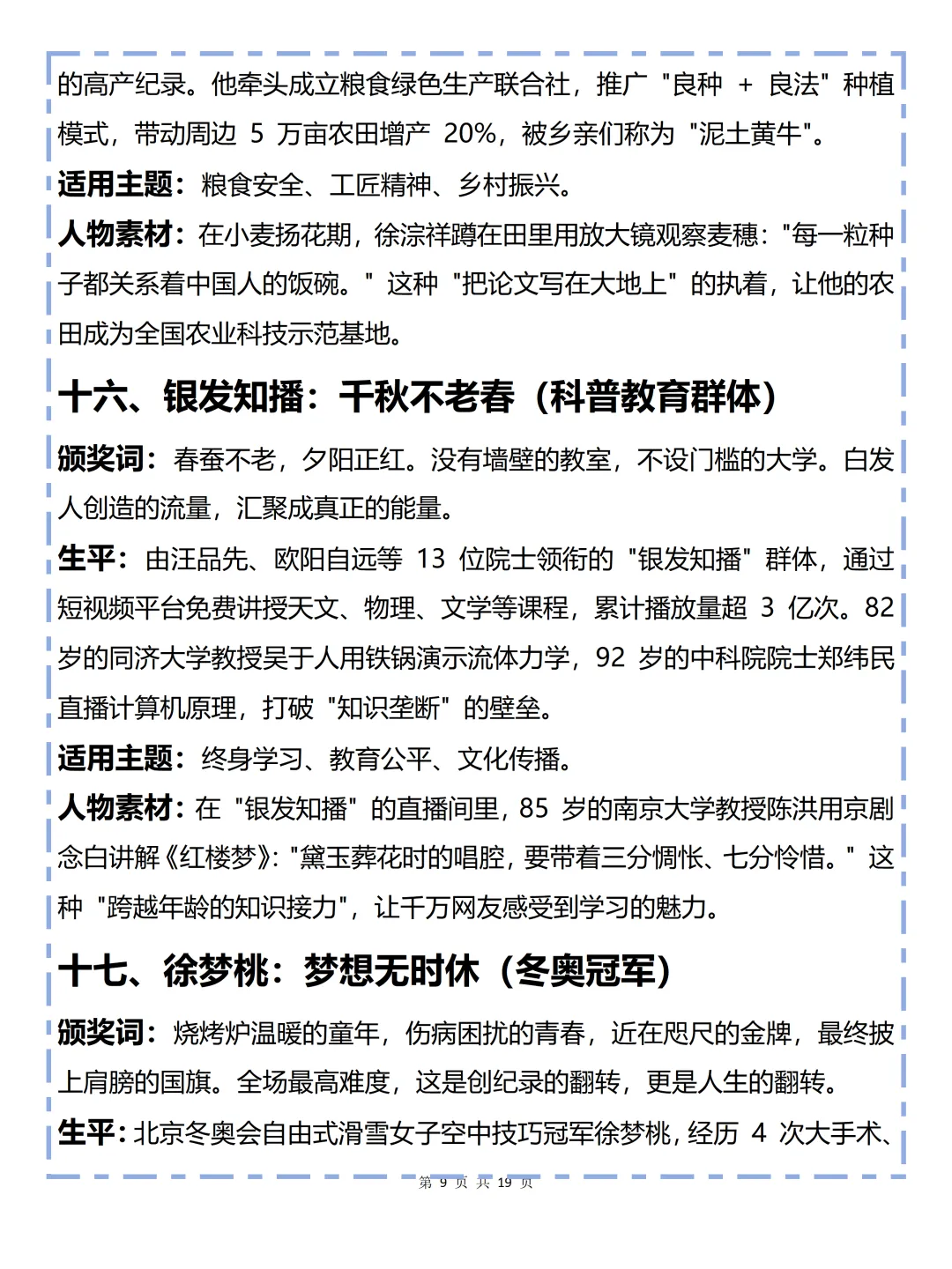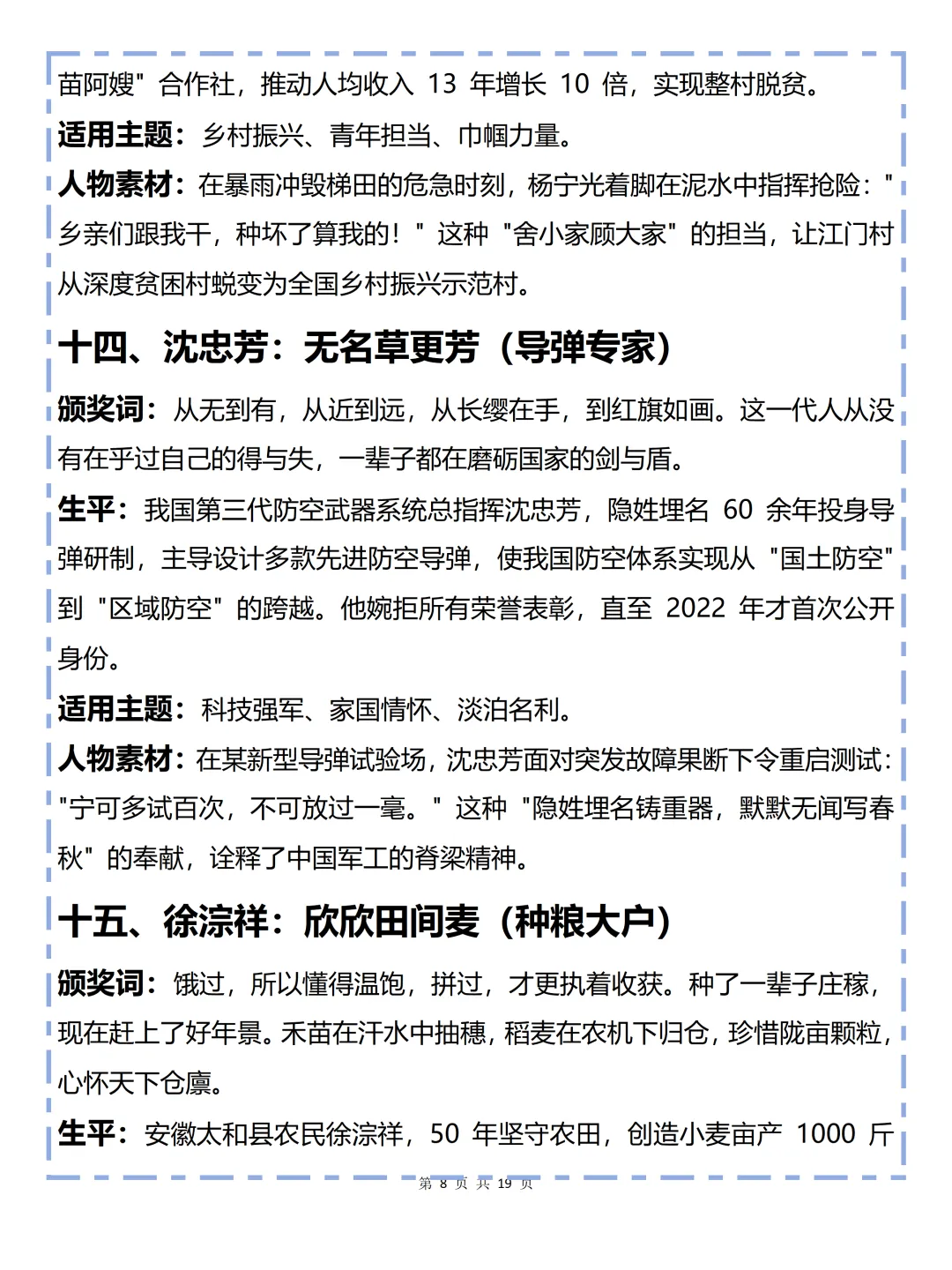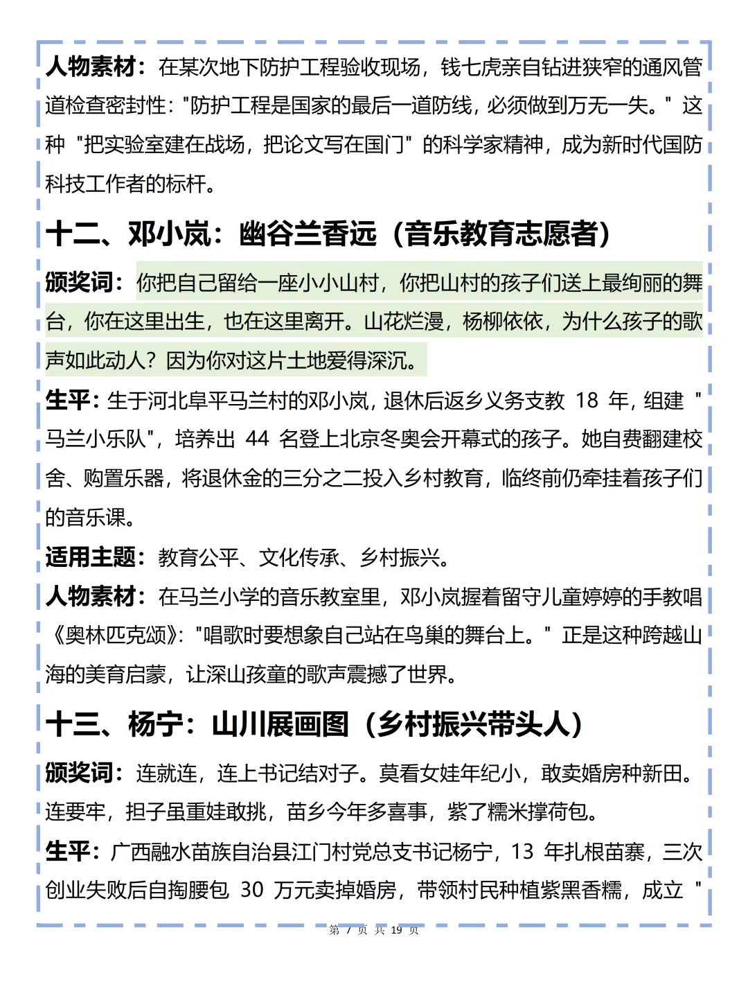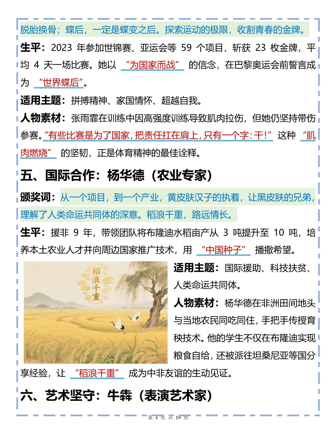 今天给大家整理了中考必备的【作文素材积累当代篇】,覆盖科技先锋、教育灯塔、体育精神等全场景常考话题,附详细典型人物与适用主题,不管题目如何变式,都能精准应对,轻松拿下高分!