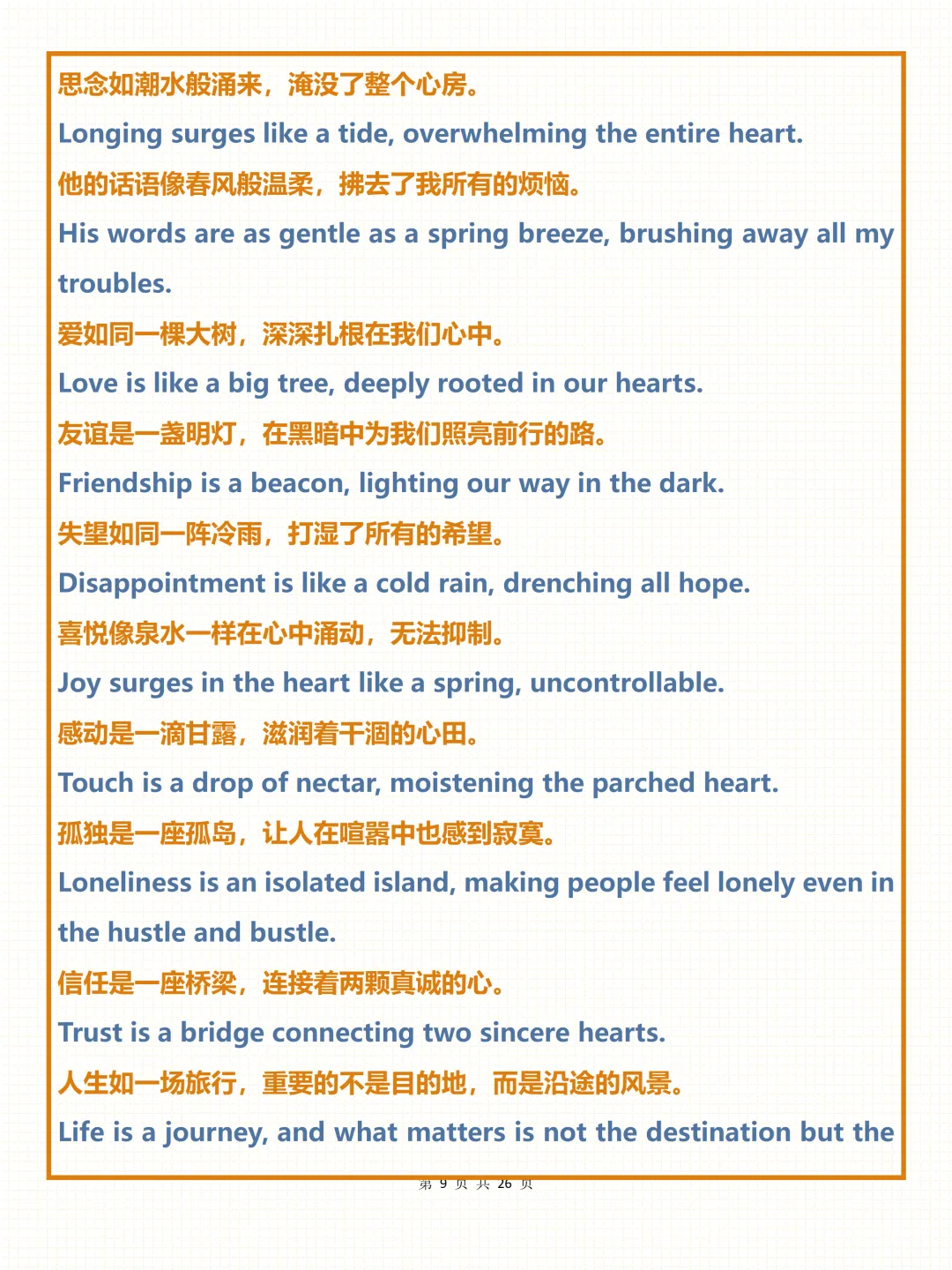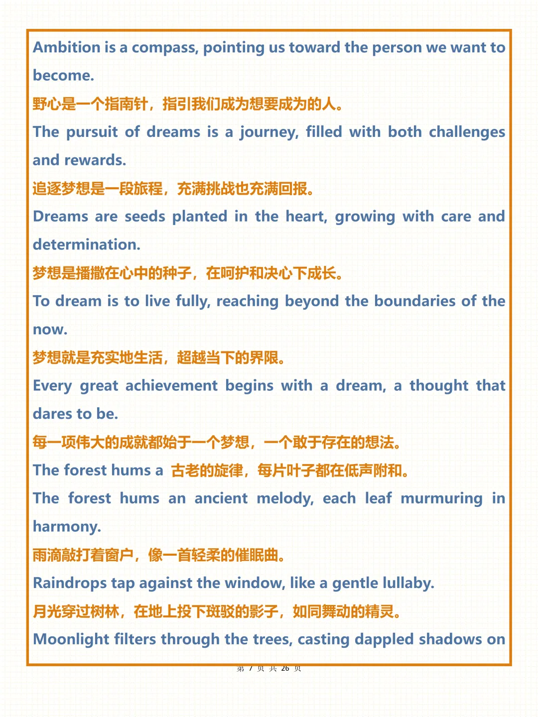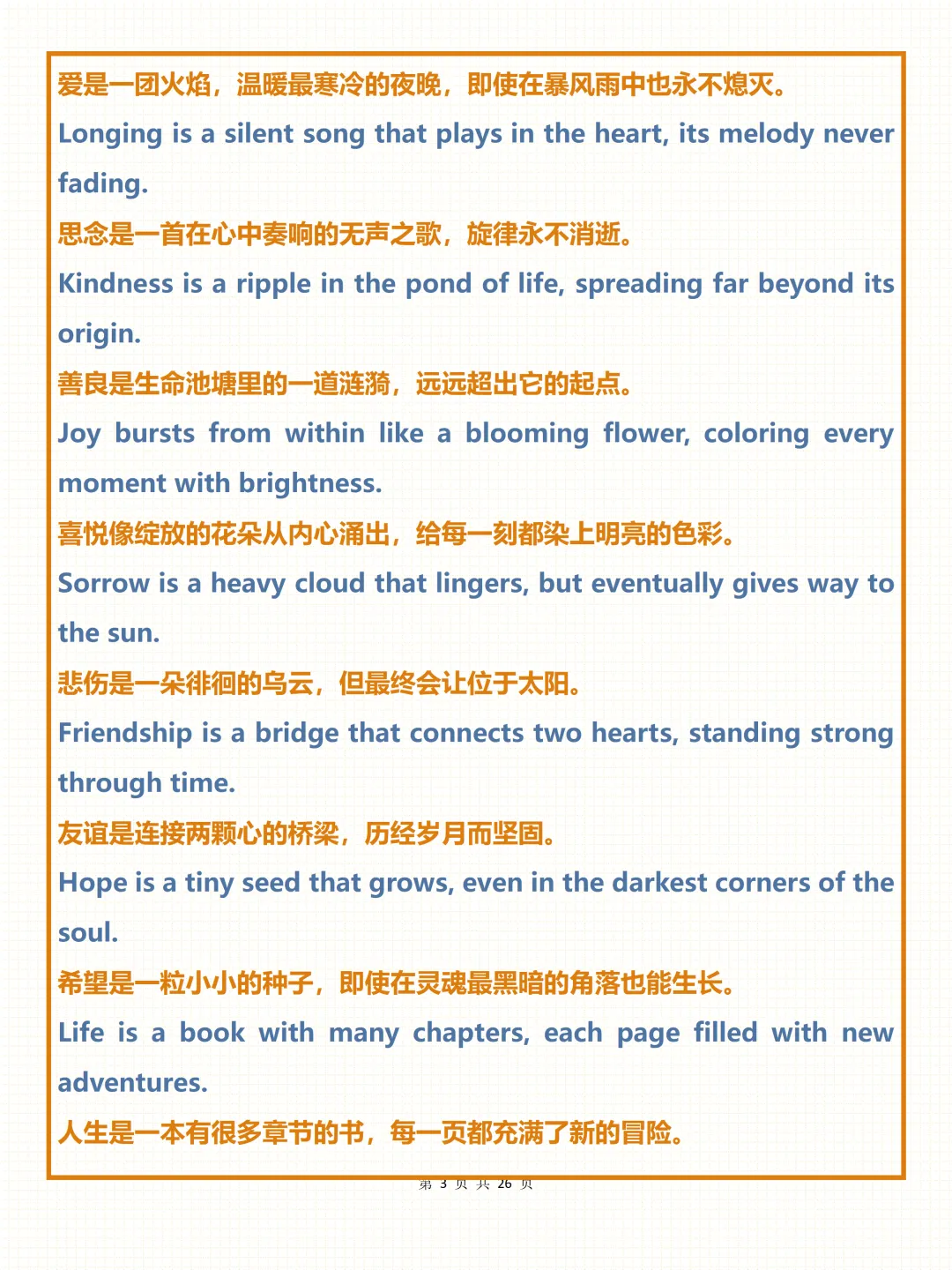 今天给大家整理了中考必备的【绝美英语句子】,覆盖美丽的自然现象、感情抒发、哲理名句等全场景常考话题,附详细表述与中文翻译,不管题目如何变式,都能精准应对,轻松拿下高分!