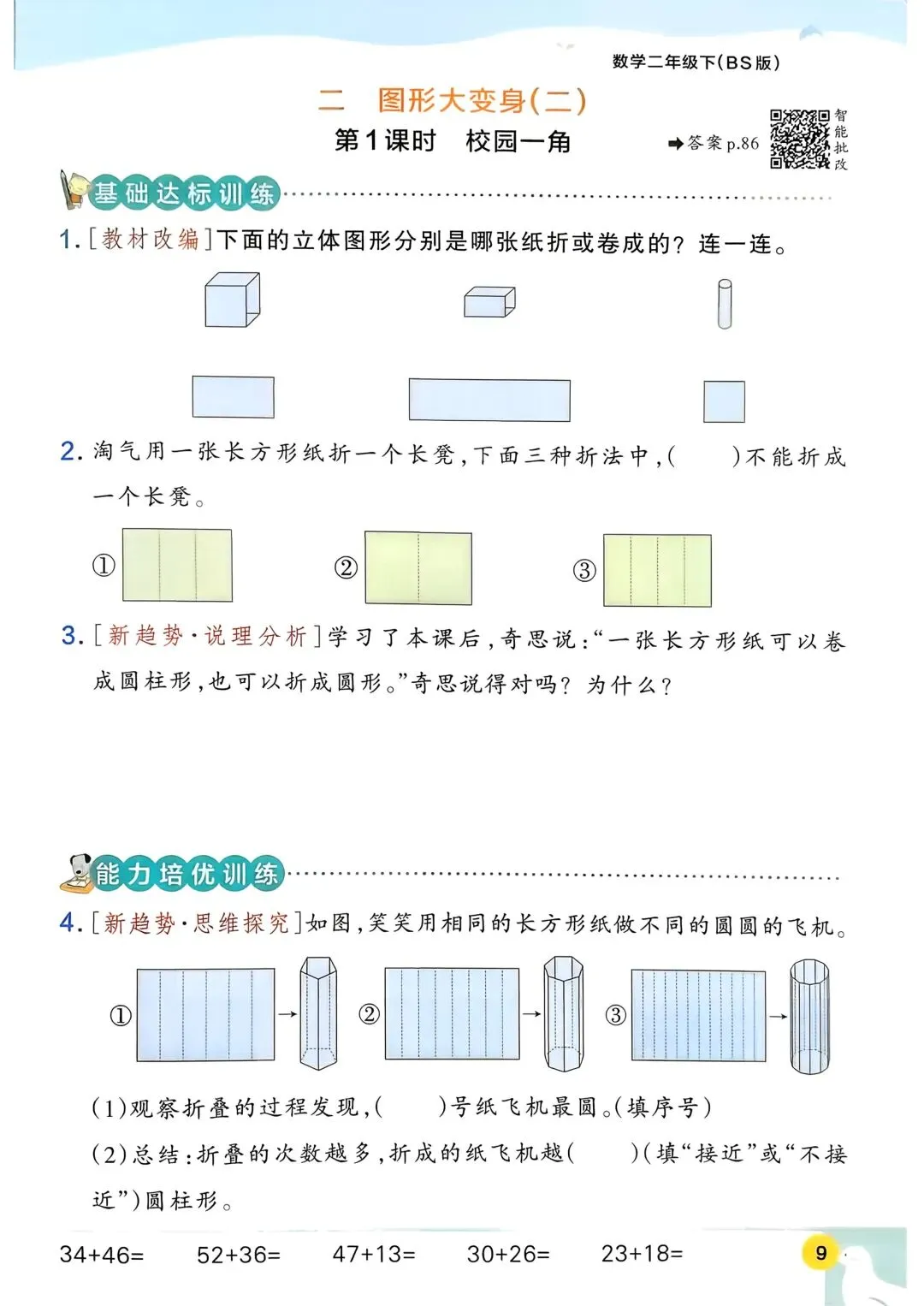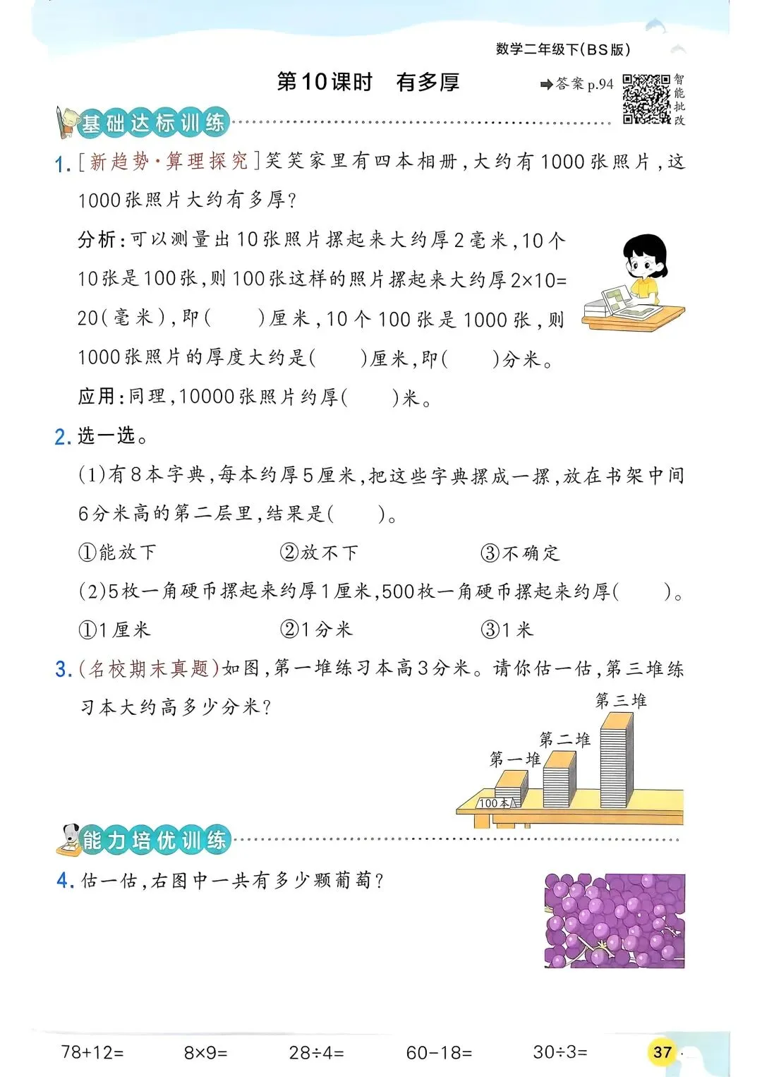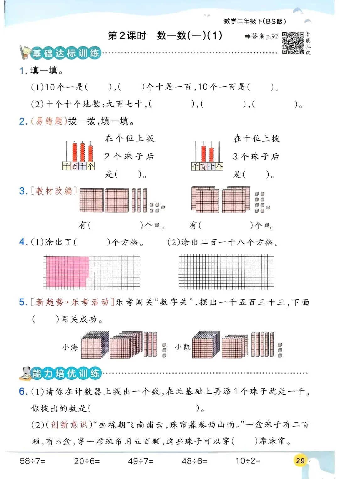 2026春新版北师大版二年级下册数学同步课时练习题·一课一练,含课后巩固练习题、单元易错题集训、单元新情境题强化训练,(含答案)电子版可打印。