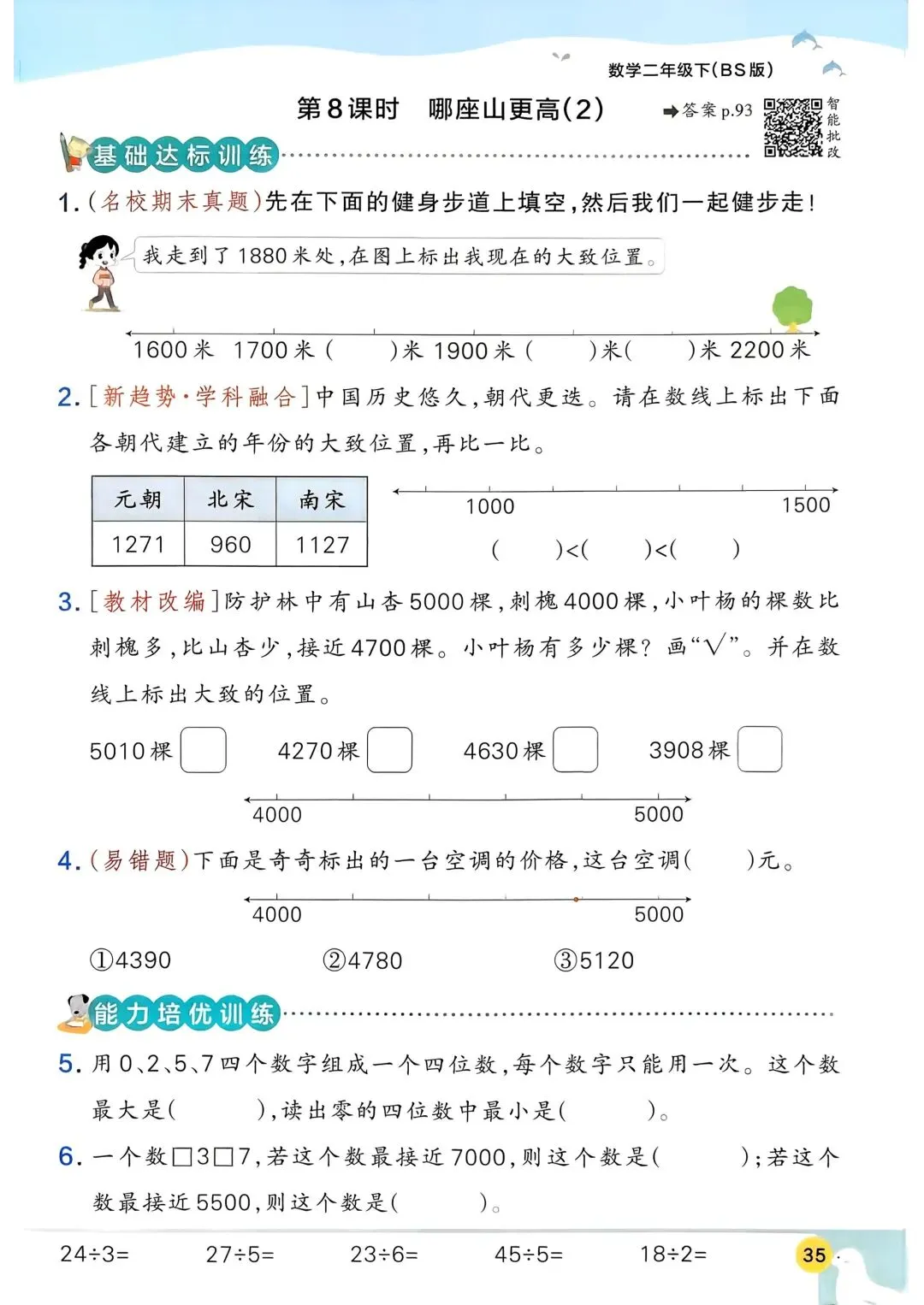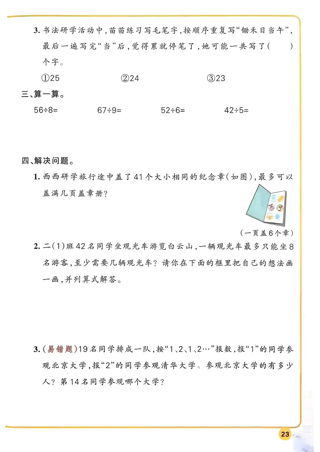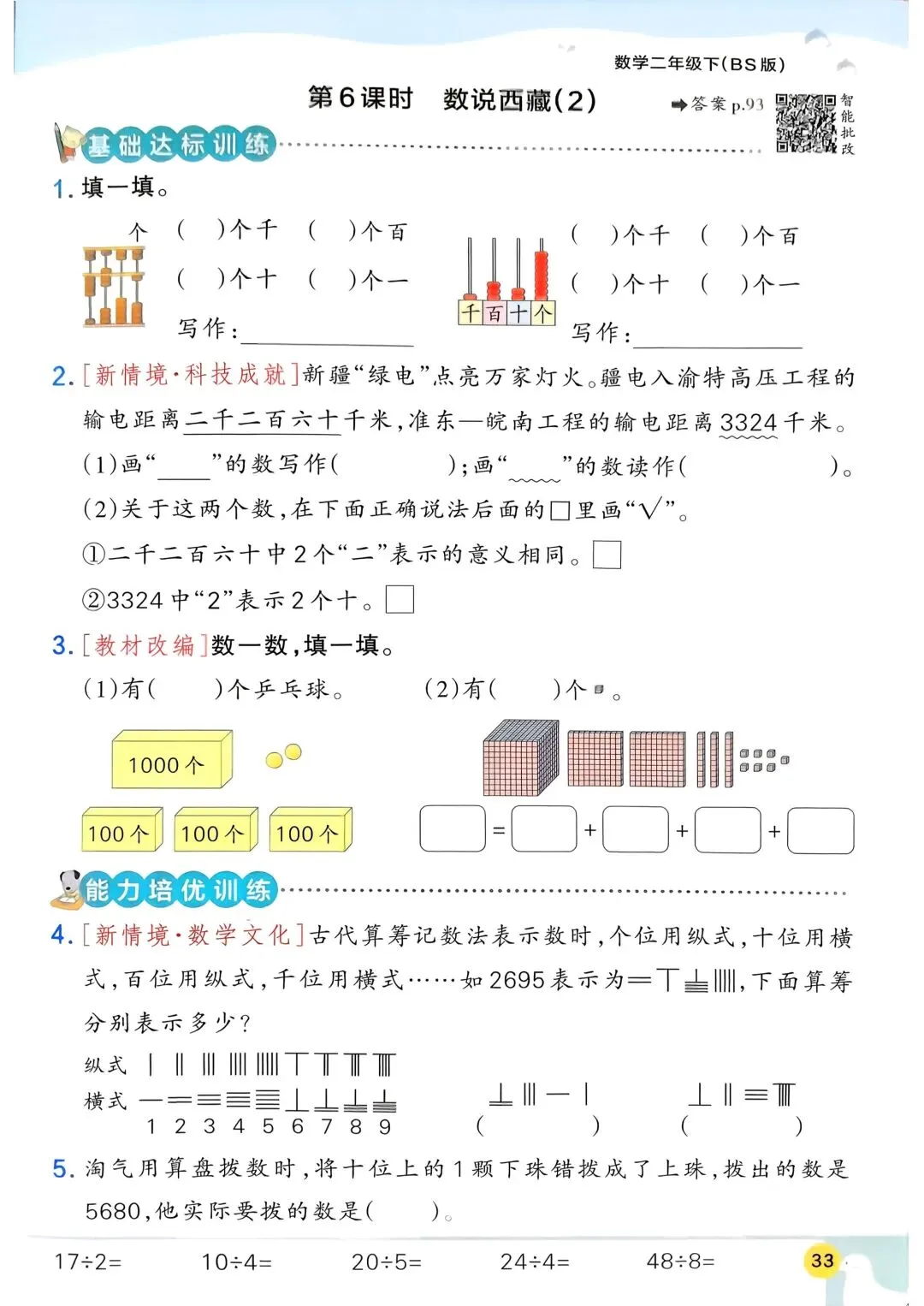 2026春新版北师大版二年级下册数学同步课时练习题·一课一练,含课后巩固练习题、单元易错题集训、单元新情境题强化训练,(含答案)电子版可打印。