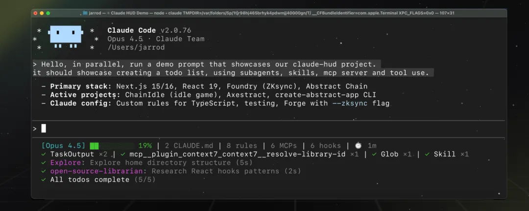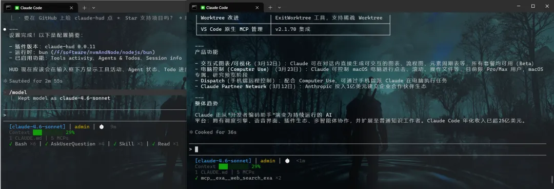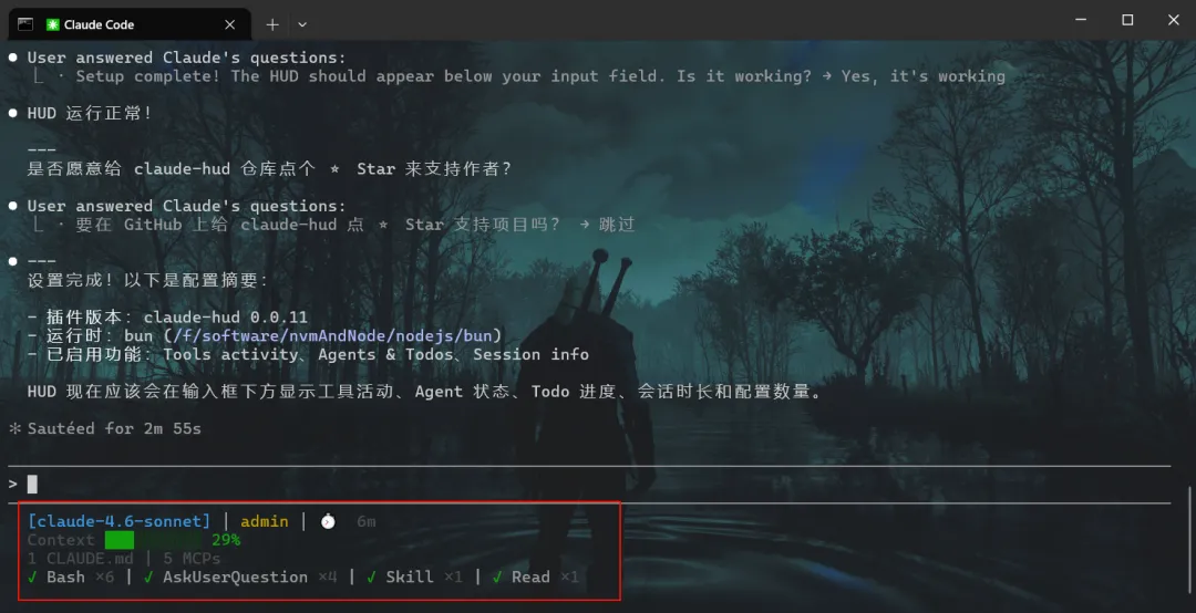至此,Claude-hud实时仪表盘安装成功!