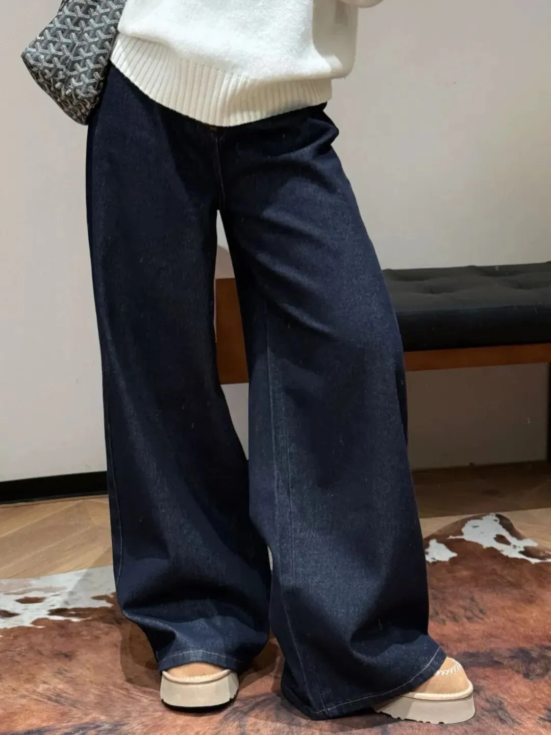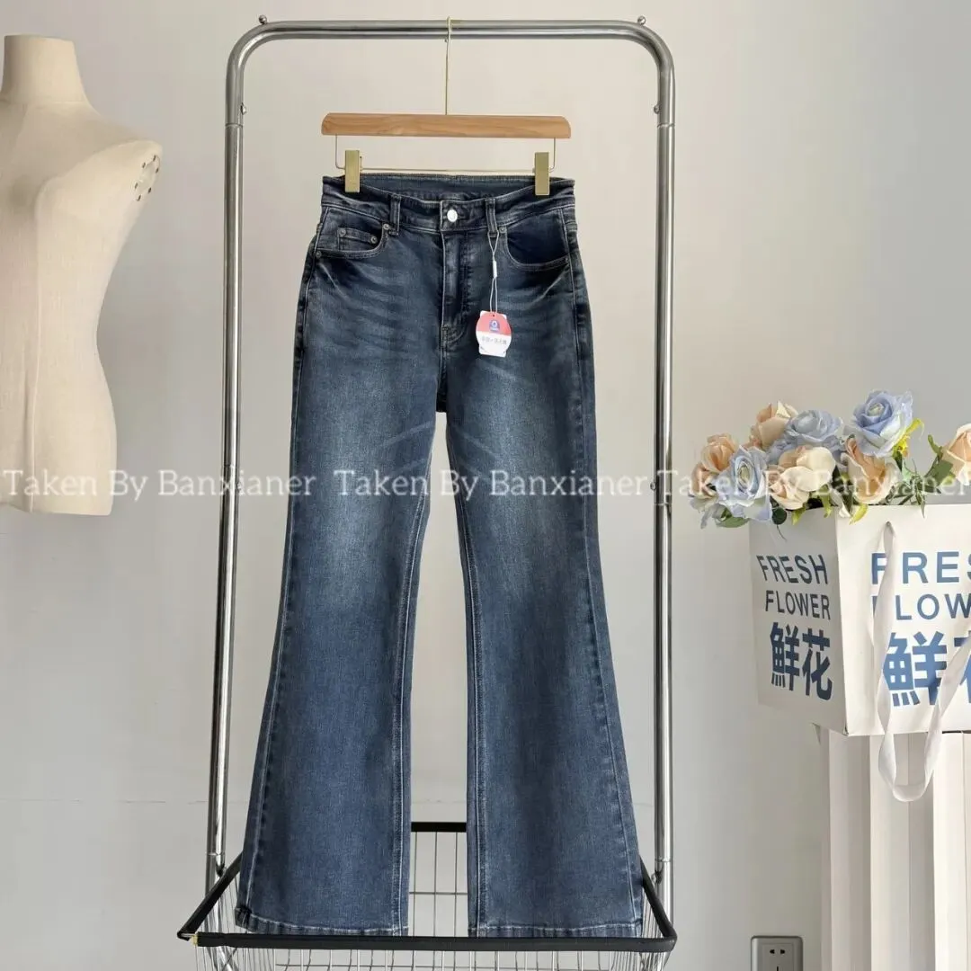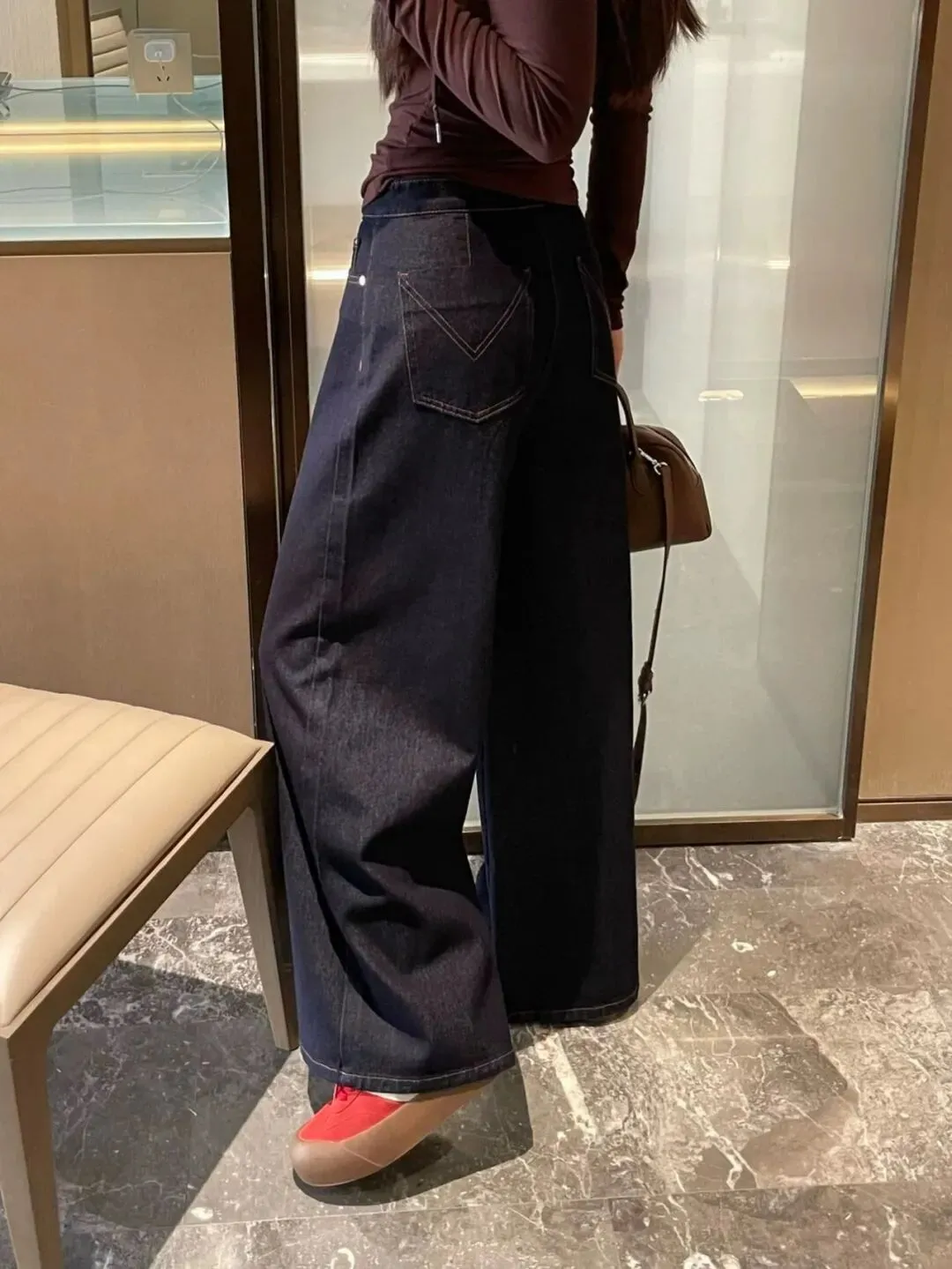 裤型超好~复古松弛感时髦高腰显瘦垂感大阔腿裤拖地裤长裤牛仔裤女售价95米裤型敲好的牛仔裤!高含棉的斜纹牛仔面料挺括有型,基本无弹高腰的设计刚好卡在腰线醉细的地方大阔腿裤型垂感满分把腿修饰得又直又长,很遮肉!撞色明线和 V 型后袋的设计,复古感拉满金属铆钉和后腰皮标,细节做得超扎实日常穿不卡裆不勒腰,通勤休闲都适配好穿又耐看,上身美式复古的慵懒感!真的很难不爱!