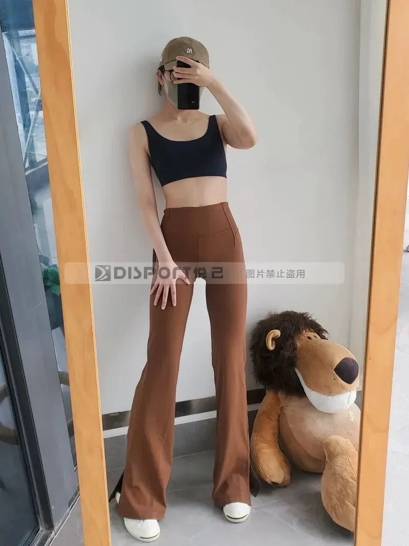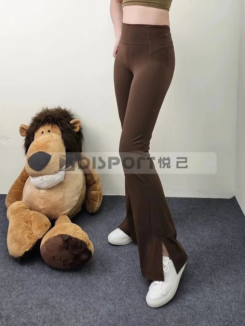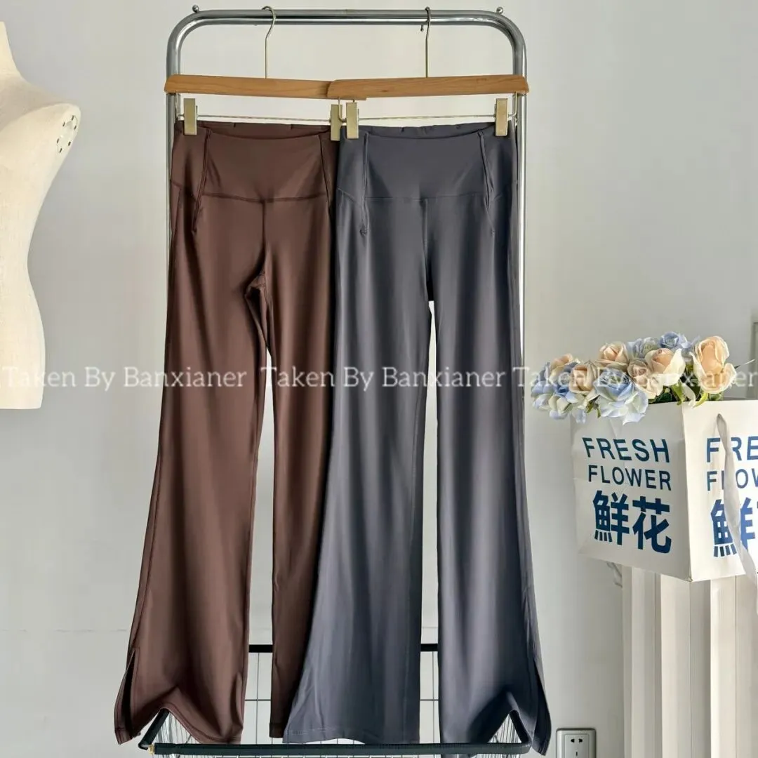 侧开叉~四面弹裸感显瘦修身休闲运动弹力速干微喇叭瑜伽裤打底裤女