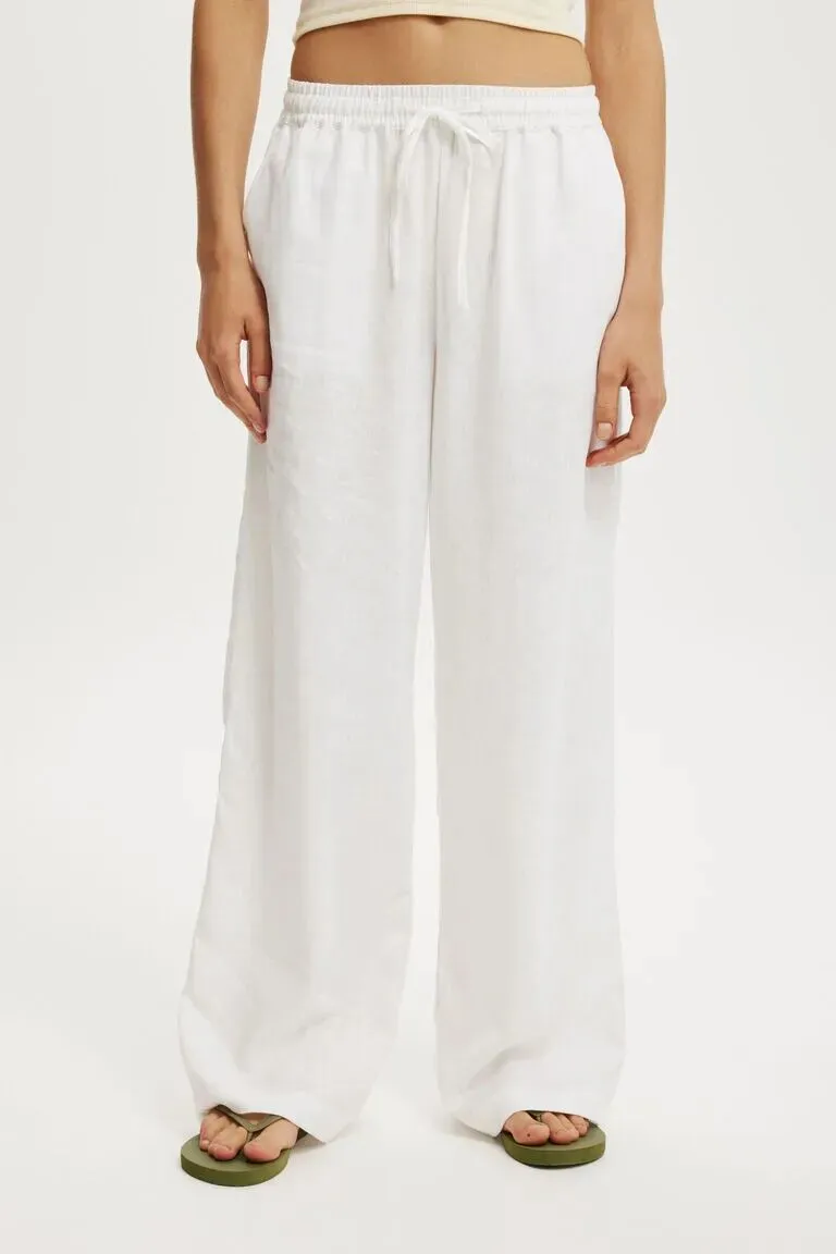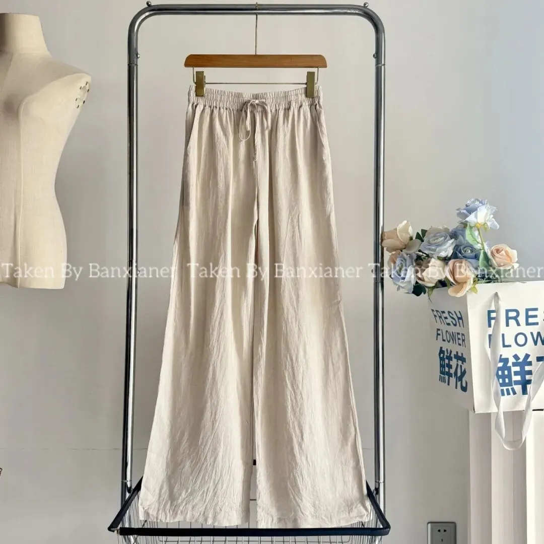 少量澳单~55麻~松弛慵懒抽绳松紧腰宽松透气休闲麻裤长裤阔腿裤女