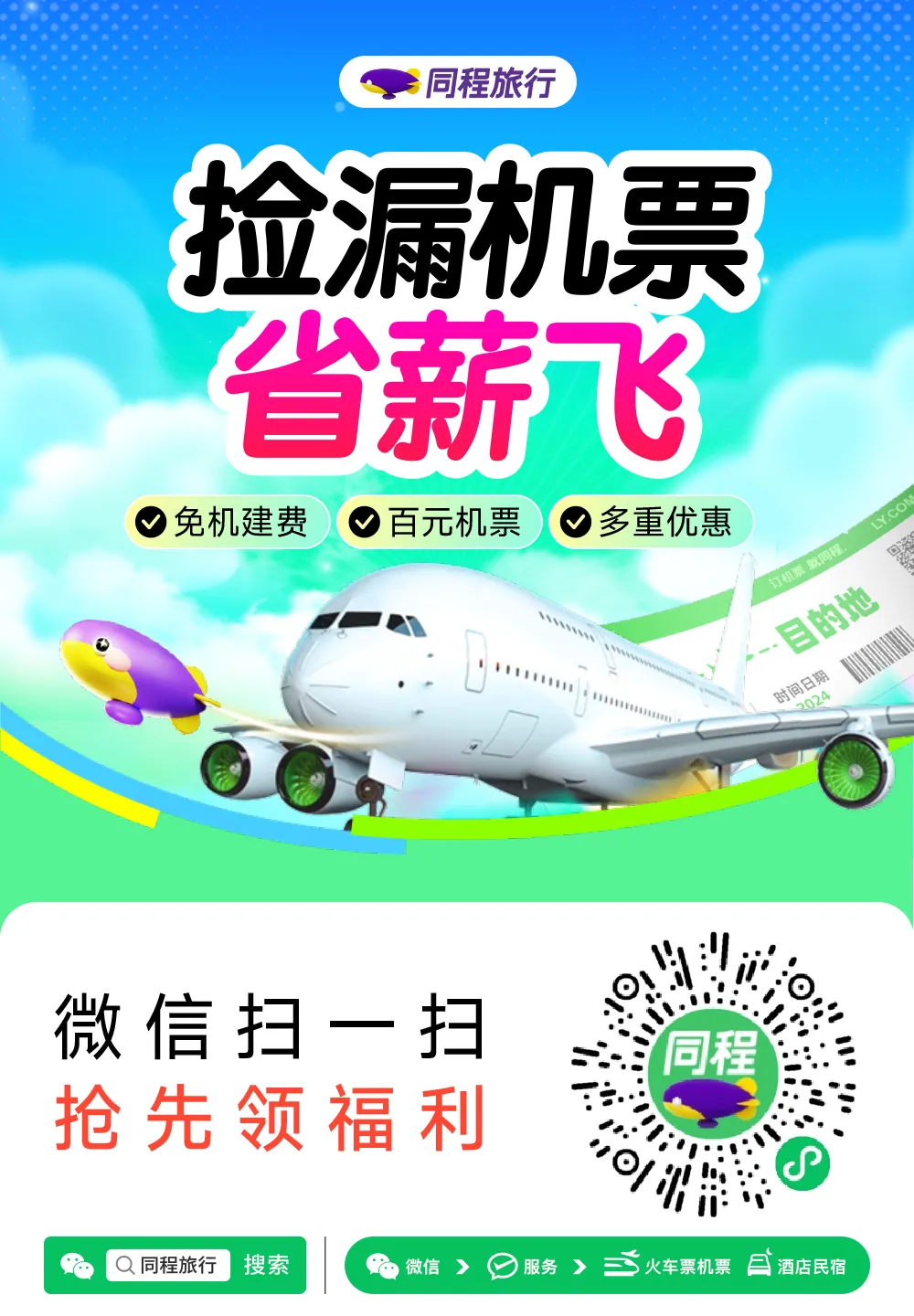0元机建费&百元机票,多重优惠福利