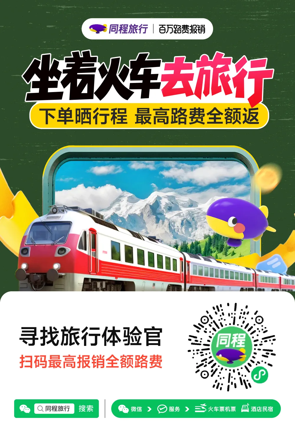 坐着火车去旅行,订火车票送路费,最高全额报销!