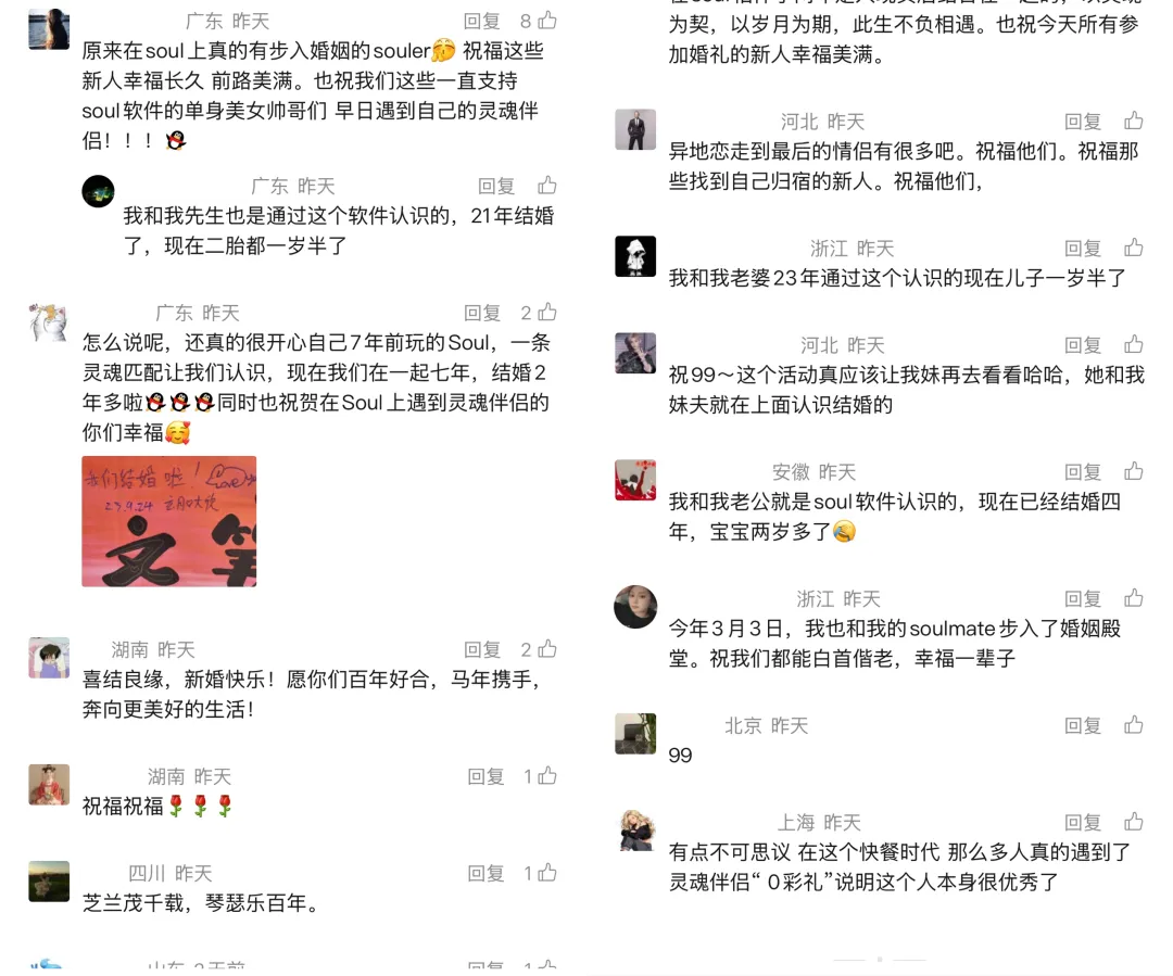 在平台看来,当代年轻人的婚恋问题,不只是“如何认识一个人”,还包括如何建立信任、如何维持关系,以及如何走入婚姻。此次活动,正是 Soul 对这一命题的一次现实回应——不仅提供相遇的可能,也尝试参与到“关系如何走得更远”的过程之中。