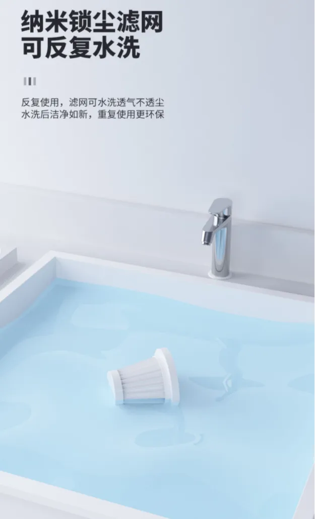 集尘仓配置了纳米锁尘滤网,透气不透尘,脏了用清水冲一冲,可以重复利用减少损耗,性价比超高。