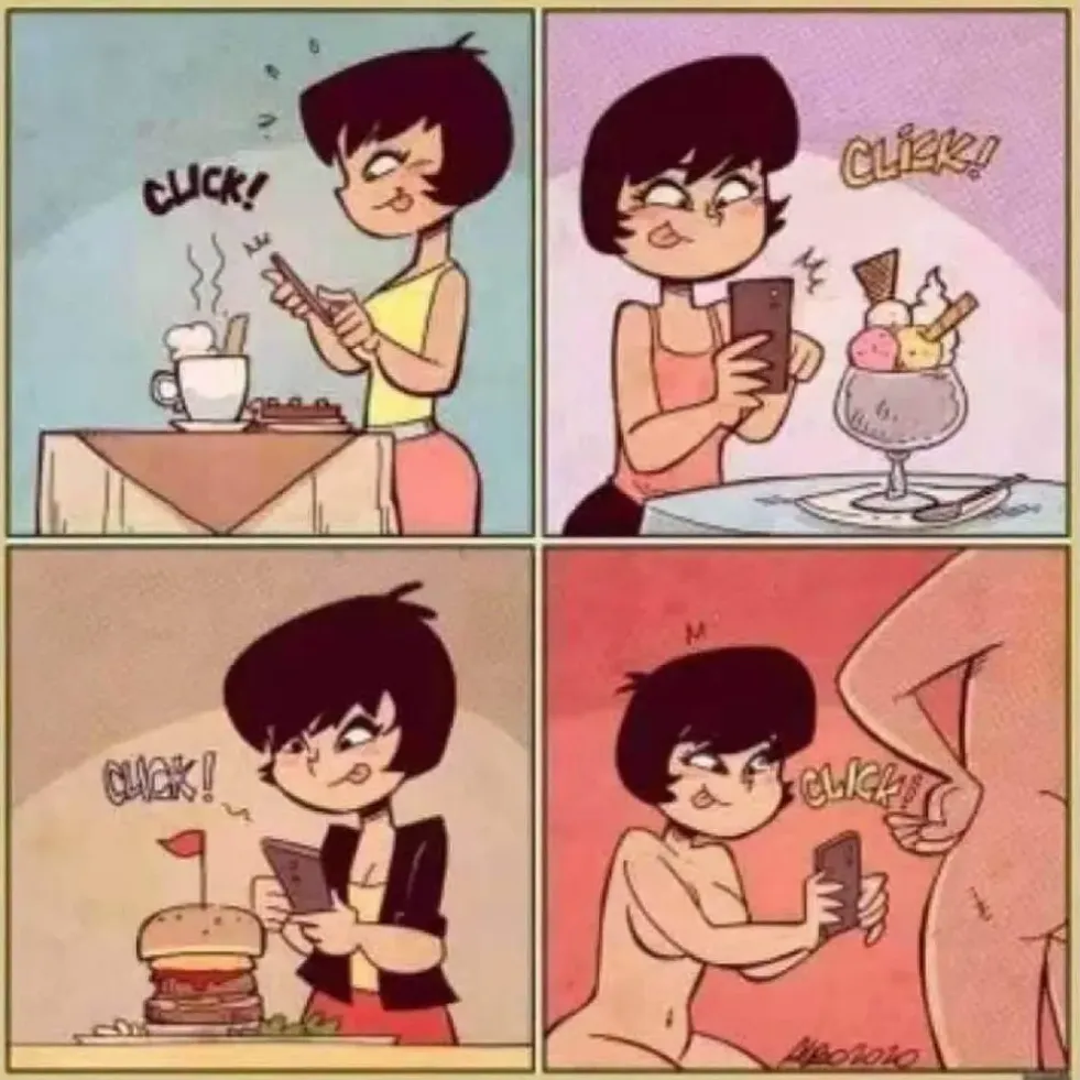 开心漫画|现代人都在喜欢吃东西前拍照!