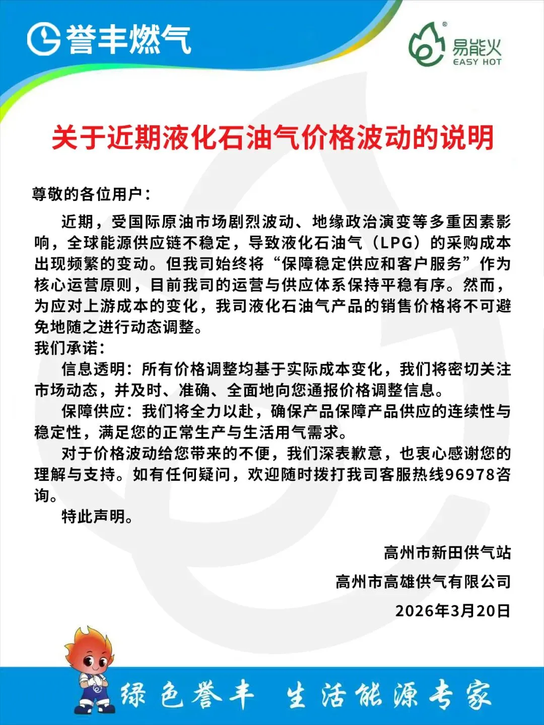 关于近期液化石油气价格波动的说明