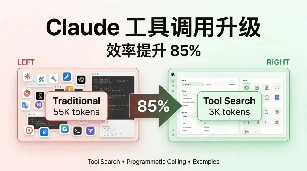 当你的 AI Agent 需要同时对接几十个工具时,光是加载工具定义就要消耗 10 万+ token,实际任务还没开始,上下文窗口已经快满了。Anthropic 通过三个关键特性,让 Claude 的工具调用效率提升了 85%,准确率提升了 18 个百分点。