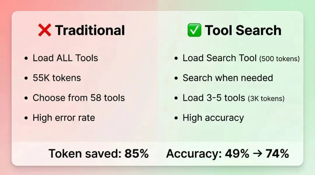 传统方案 vs Tool Search Tool:左右对比