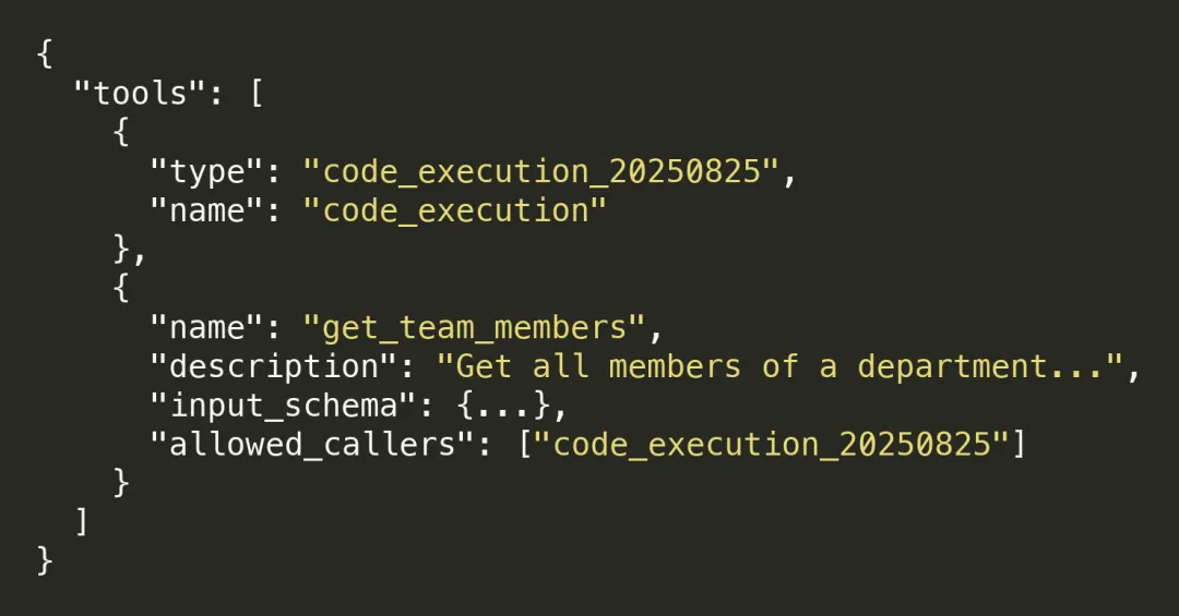 在工具定义中添加 allowed_callers 字段: