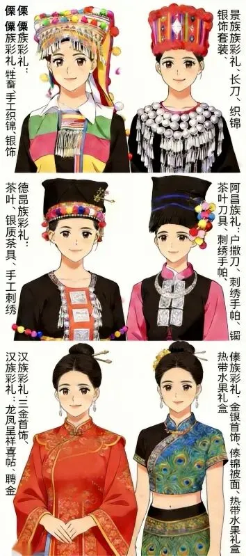 · 景颇族小伙要送奶母费(感谢岳母养育之恩)、长刀(象征守护家庭)、三金;