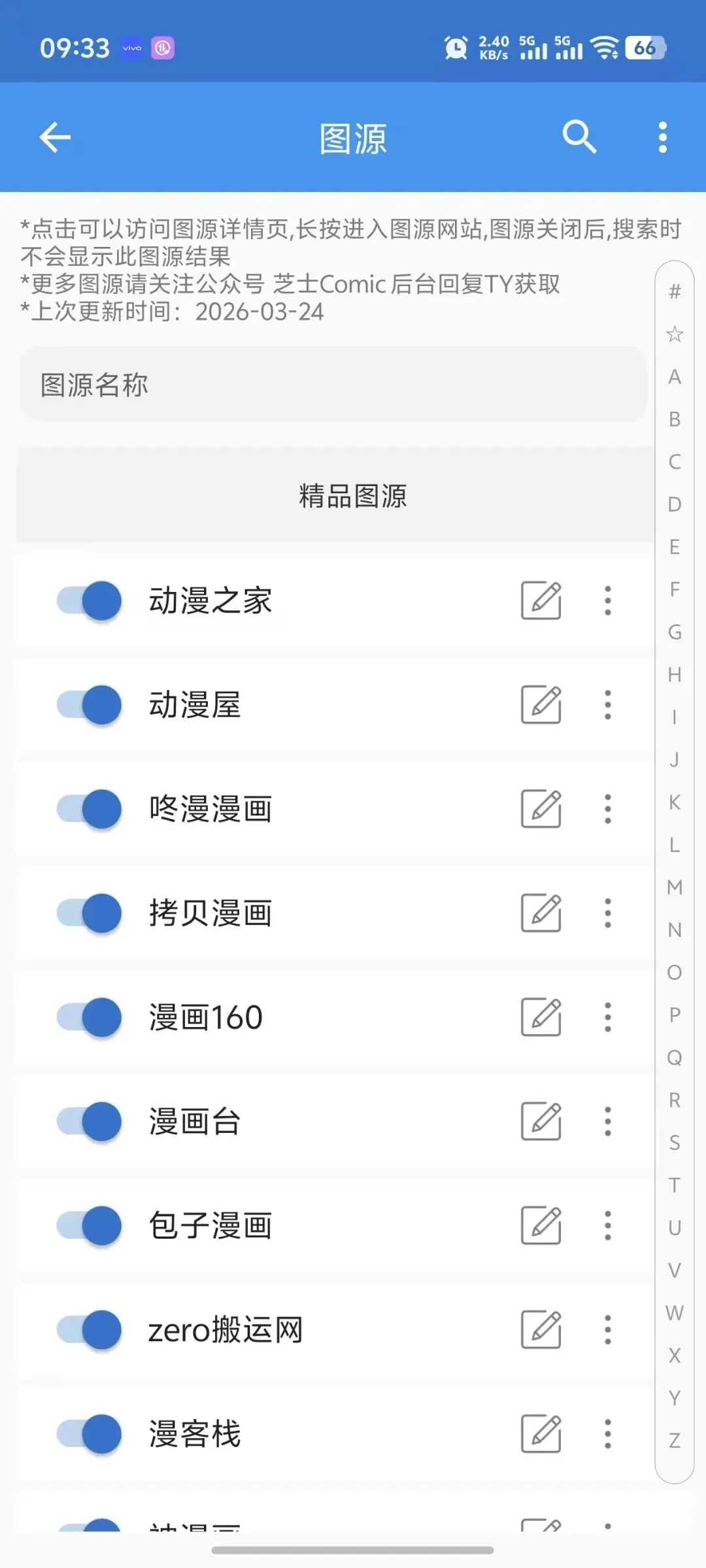 图源导入:如果找不到想看的漫画,可自定义导入图源,复制图源地址粘贴到对应位置,点击确定就能导入成功,内置36个漫画源,基本无需自行导入,省心又便捷。