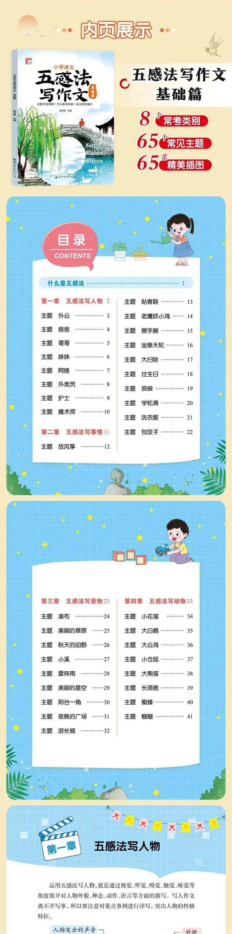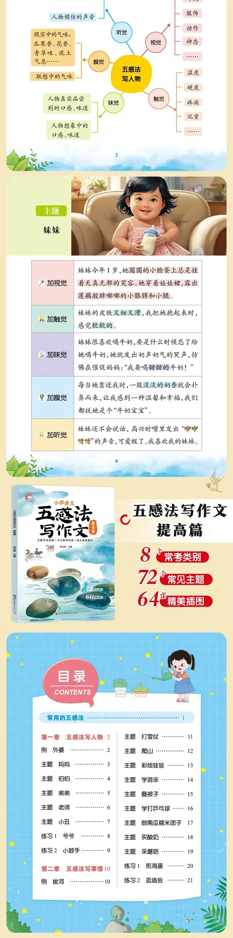 ✅五感法(基础 + 提高篇):教孩子用「视觉+听觉+嗅觉+触觉+味觉」多维描写,把人物、景物写活!画面感直接拉满