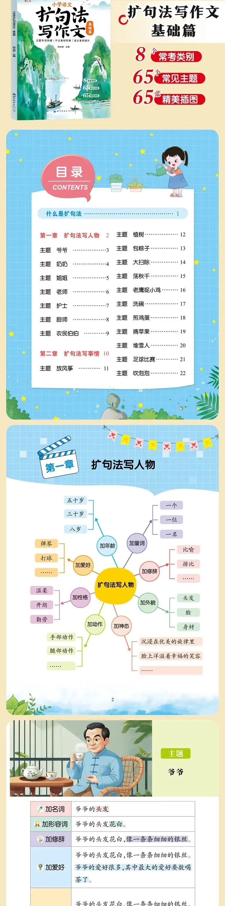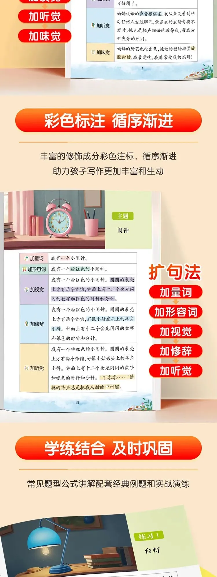 ✅扩句法(基础+提高篇):独创「加量词→加形容词→加视觉→加修辞→加听觉」扩句公式,把短句变生动!