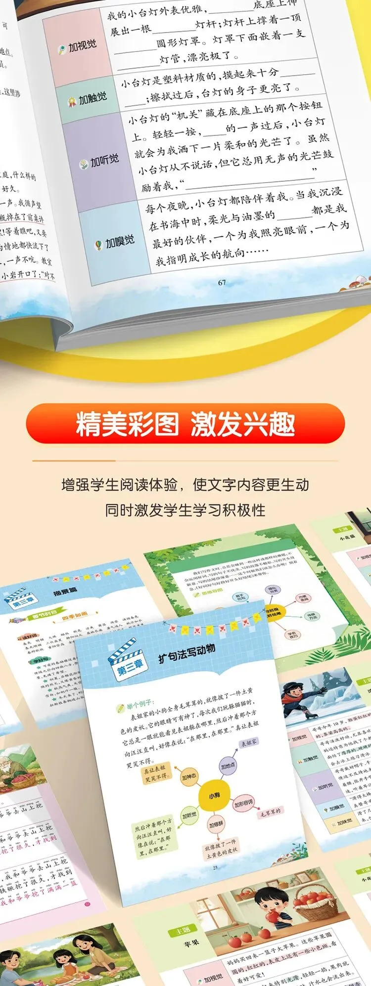 由易到难,适配全阶段:从基础入门到拔高提升,不管是一二年级练写话,还是三到六年级写考场作文,都能直接用!