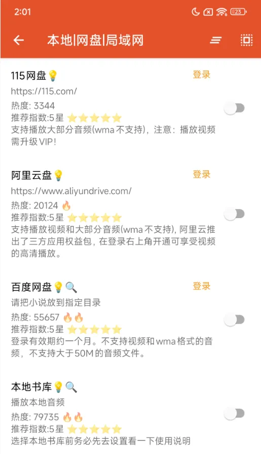 更惊喜的是,软件支持添加网盘!登录自己的网盘账号,就能在线收听网盘中存储的有声资源,相当于把自己的私人有声书库随时带在身边,再也不用费心下载占用内存。