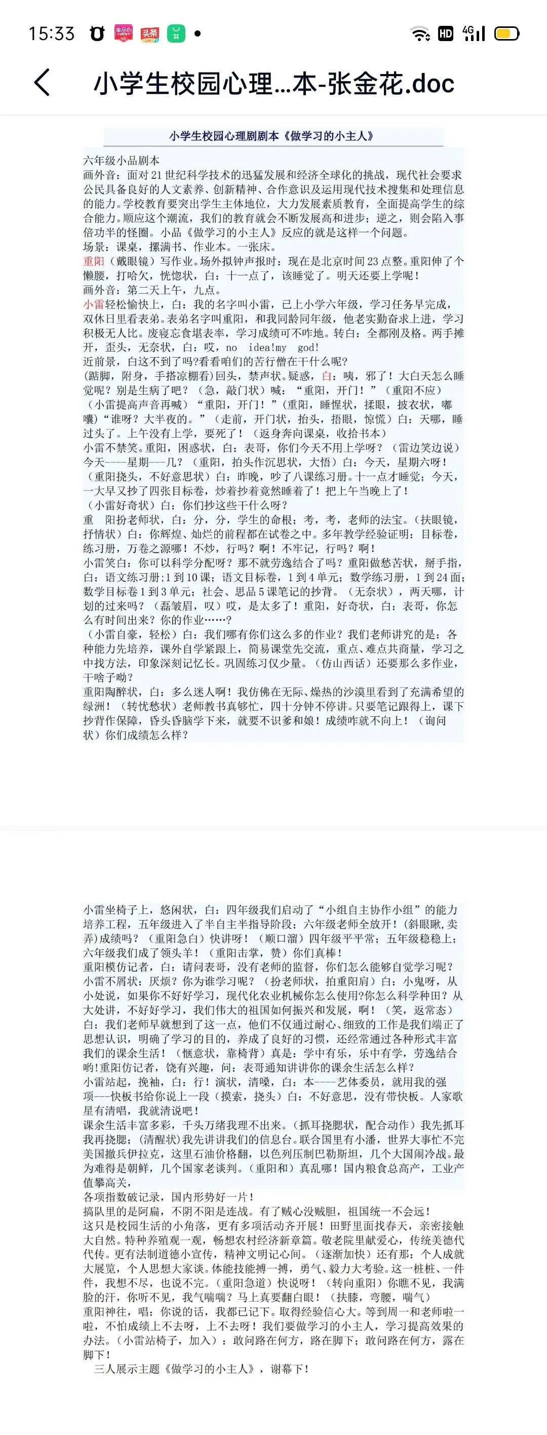4.小学生校园心理剧剧本-张金花doc