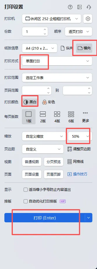 缩放:自己根据打印预览自己看着表格调整,一般都是缩小,因为直接pdf打印就是偏大,所以要缩小;