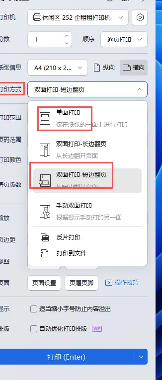 1.打印出来:出现过打印一正一反——这个是长边翻页的情况,换成“短边翻页”就行哈;