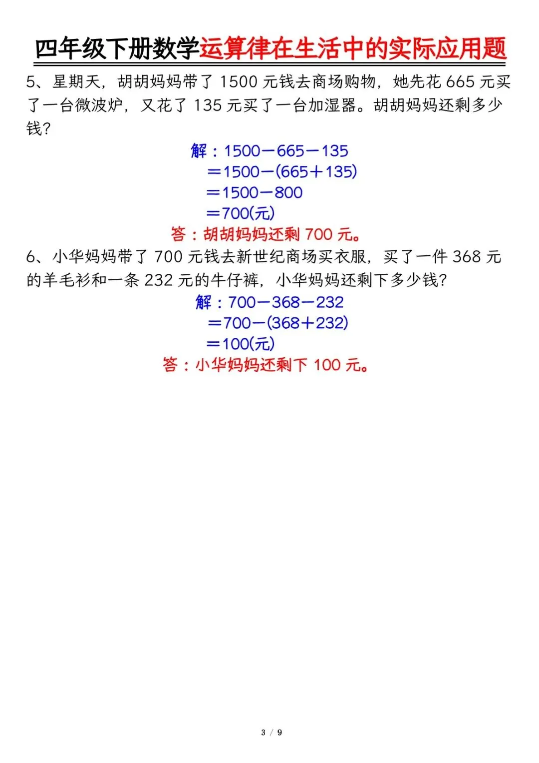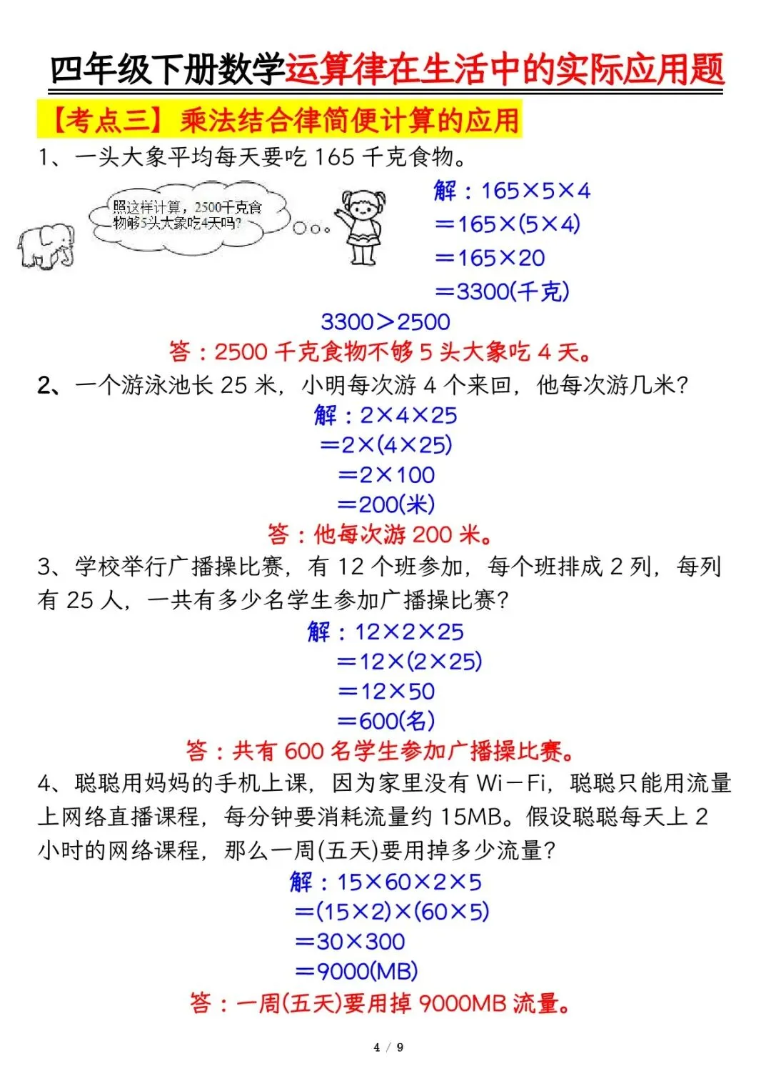 可下载丨26春四年级下册数学运算律的生活实际应用专项练习,电子版可打印