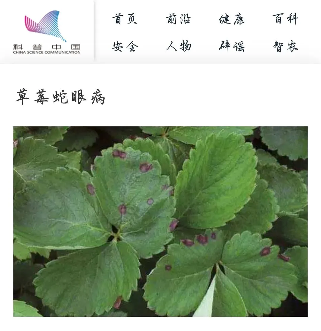 症状:在叶片上先冒出紫红色小斑点,后慢慢扩大成灰白色圆斑,像蛇眼睛一样盯着你!8、9月份最爱闹腾,虽然不咋影响产量,但会让草莓苗变“体弱多病”。