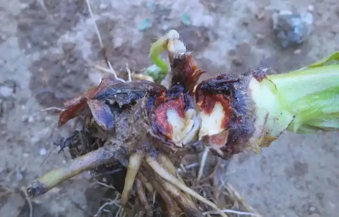 症状:草莓叶子突然打蔫,拔出来切开根部一看,根中间发红褐色,像生了锈的吸管!这病传染快,三天就能让整草莓瘫了。