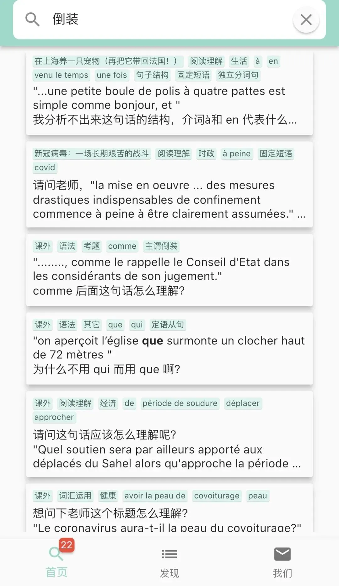而且百度里的信息良莠不齐,通常只是简单的陈述语法知识点。法语布瓜里的22条结果,不仅涵盖了法语倒装句的基础语法知识,还包含了各种高阶法语学习中遇到的长难句和一些特殊的倒装或者易错点。在学习语法的同时,也是在练习自己分析长难句的能力,一举两得。