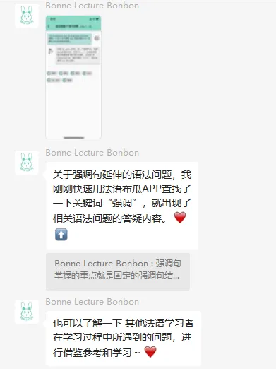 现在我们在日常答疑时也在使用“法语布瓜”,有许多问题无需等待老师解答,直接在“法语布瓜”上一搜就出来啦!