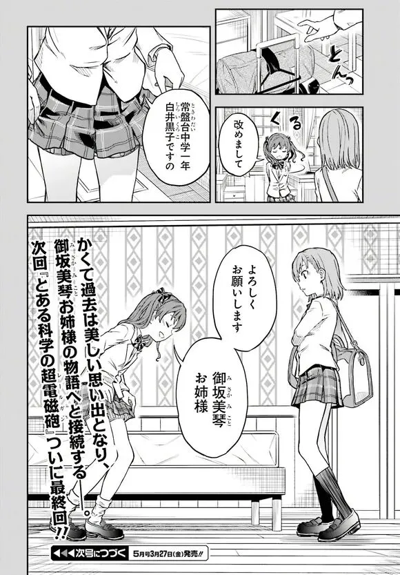由镰池和马原作、冬川基作画的知名漫画《某科学的超电磁炮》,在经历了长达19年的连载后,即将在下个月(2026年3月)发售的下一期《月刊Comic电击大王》中刊登最终话(第169话),这部长期连载的漫画也即将正式完结。