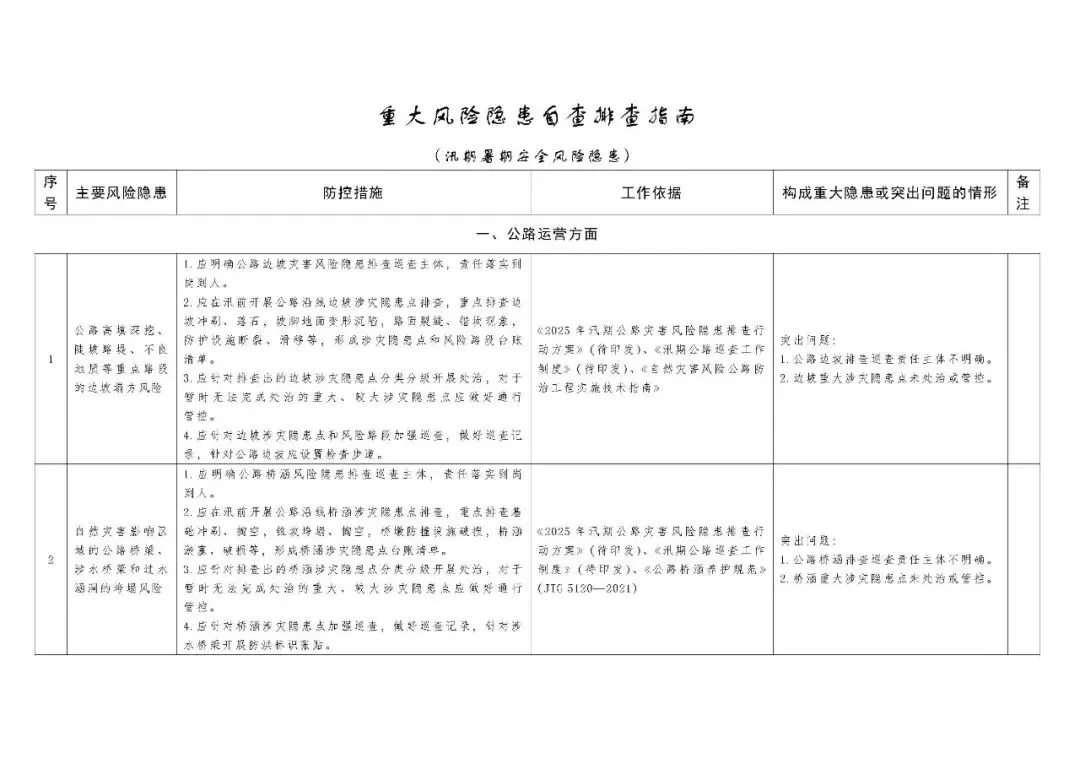 免费下载 ‖ 官方版《汛期暑期交通运输安全生产重大风险隐患自查排查指南》【2】(16页)