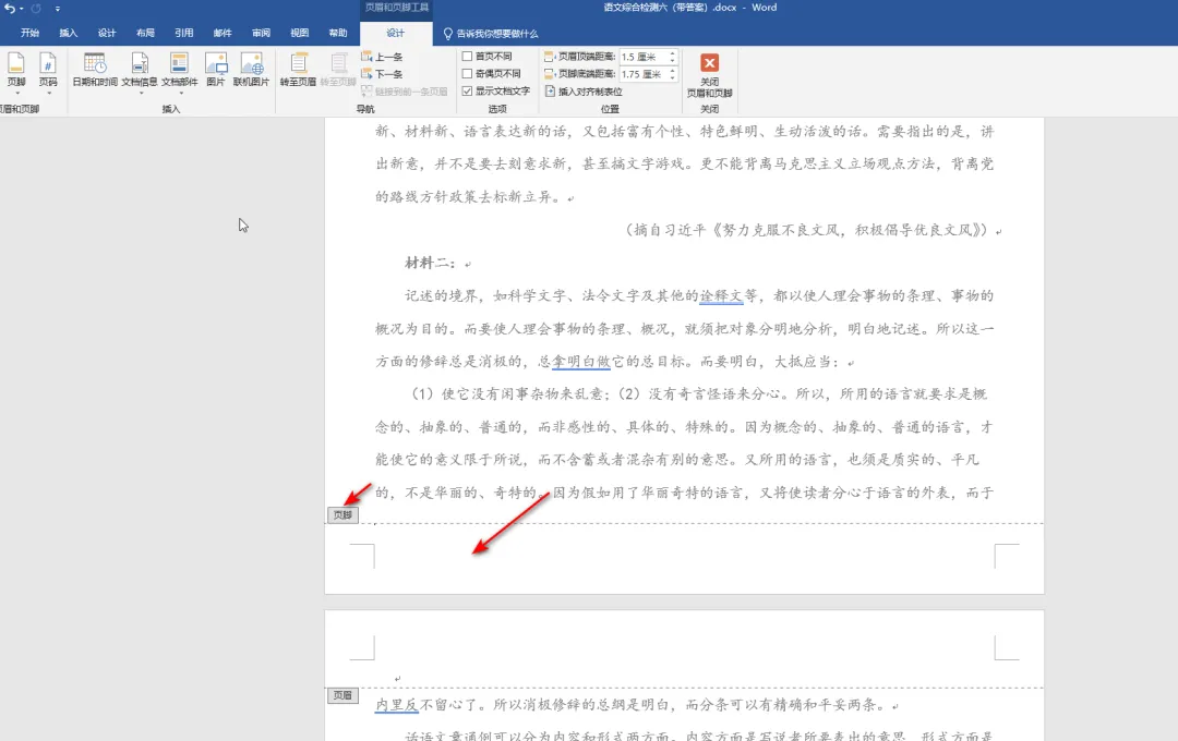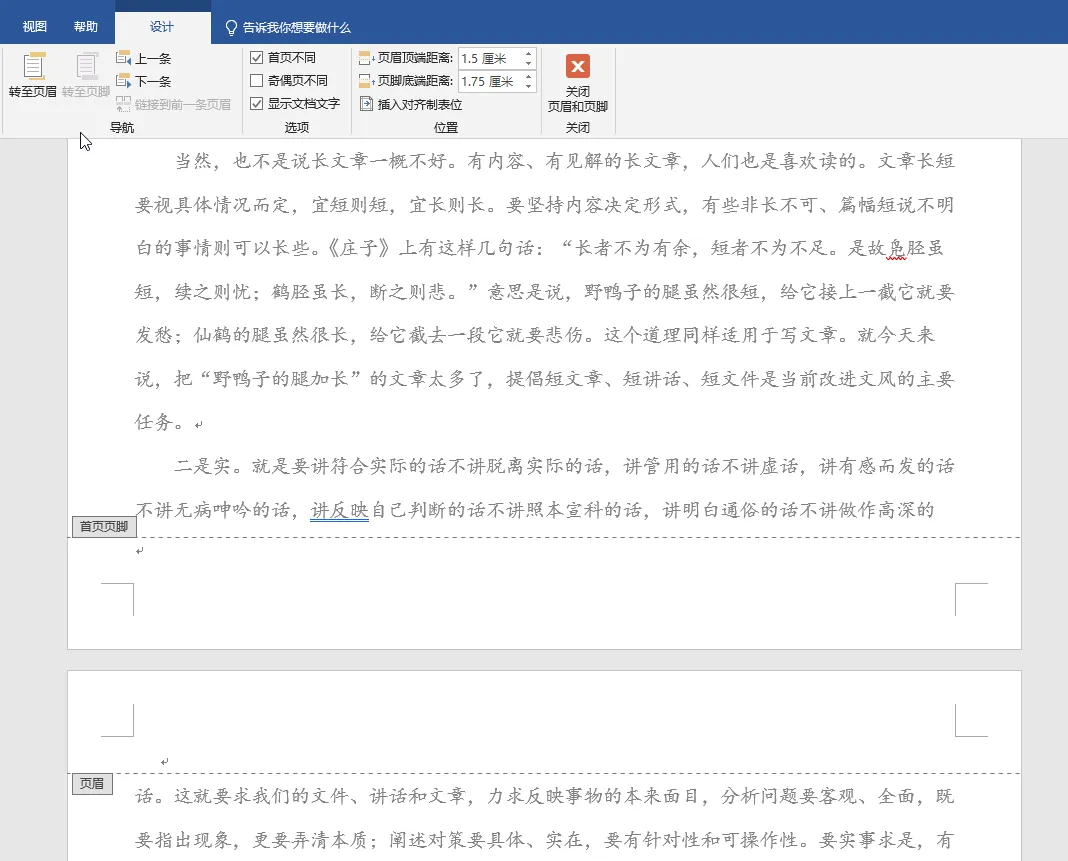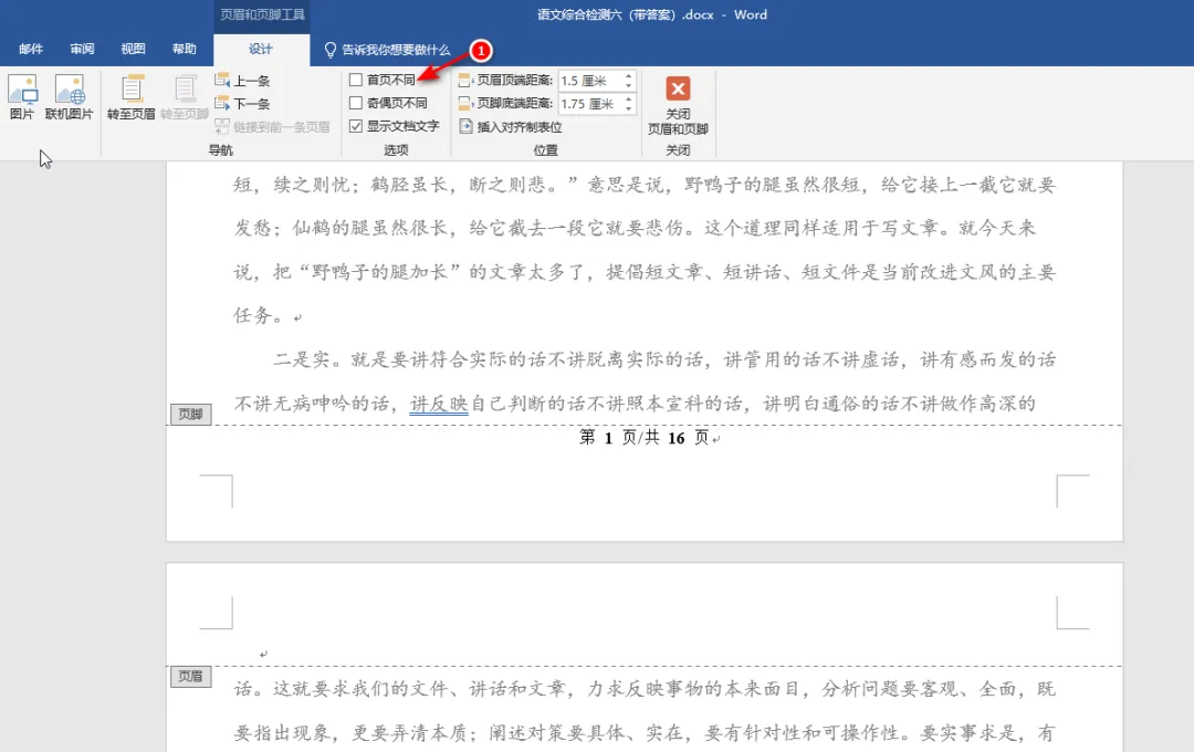 1. 还是现双击页脚,当页脚处于激活状态的时候,勾选“设计”里面的“首页不同”