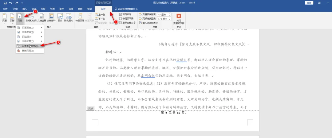 4. 如果想加上第几页,共几页的文字,可以像下面这样操作