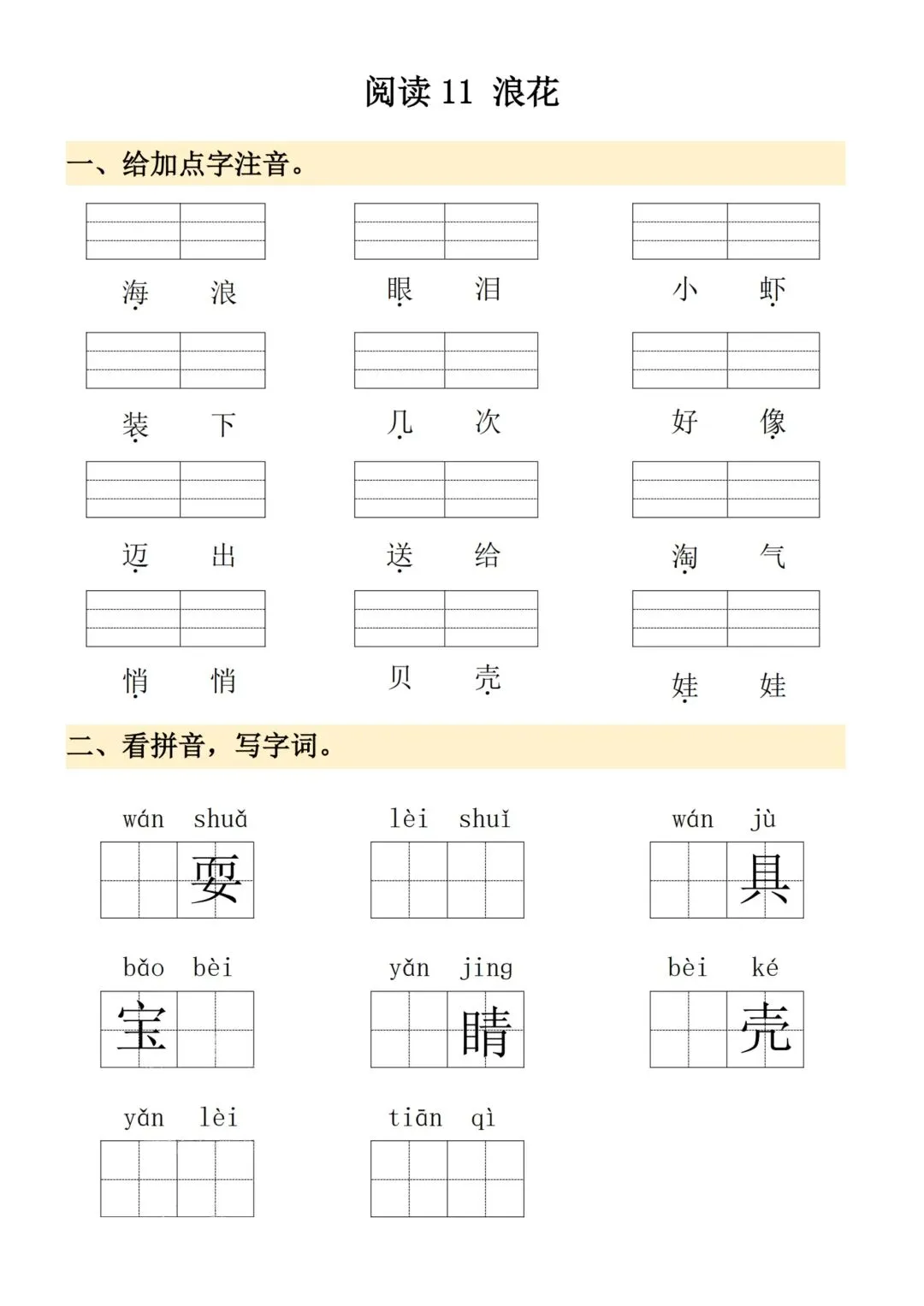 2026新版一年级下册语文《生字注音+看拼音写词语》专项训练·每课一练,电子版可打印。
