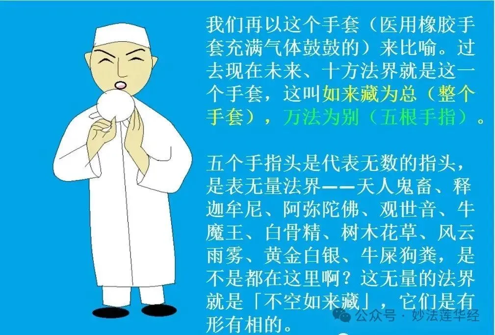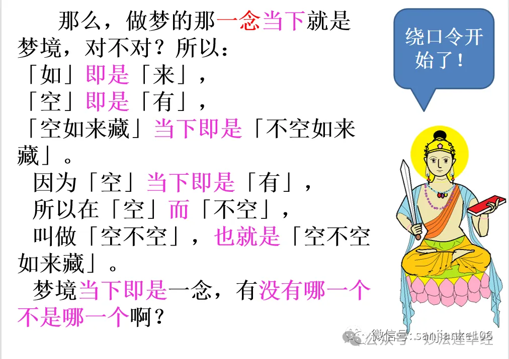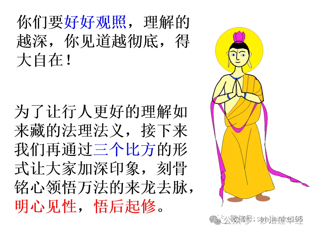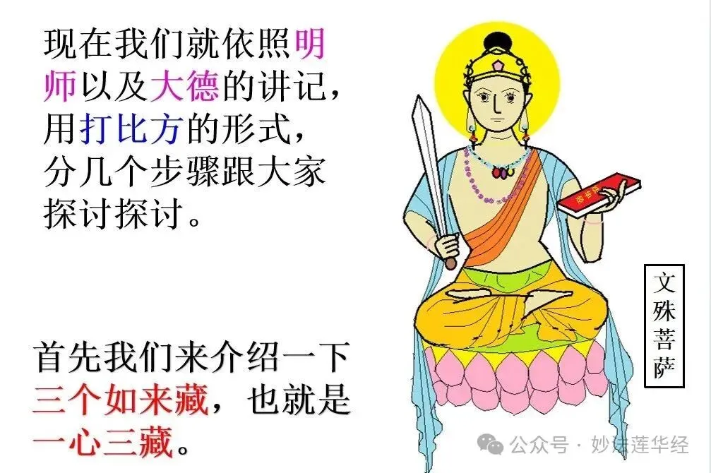 《楞嚴經》张目为“真真如性”!以别于诸经真妄空有之辩,而总括真妄空有于一,分别天地万法于三,《法華經》寓义于“莲华之根、茎、叶、华”。