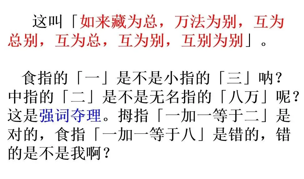 硬是从一心(“真真如性”)分化(究竟说为变现)出真心(即真如、真精、空如来藏、第九识、又名白净识)。此心无形无相、不生不灭、不增不减、不垢不净,虽离一切相,却本具、自具一切人天物事万法之性具功德。