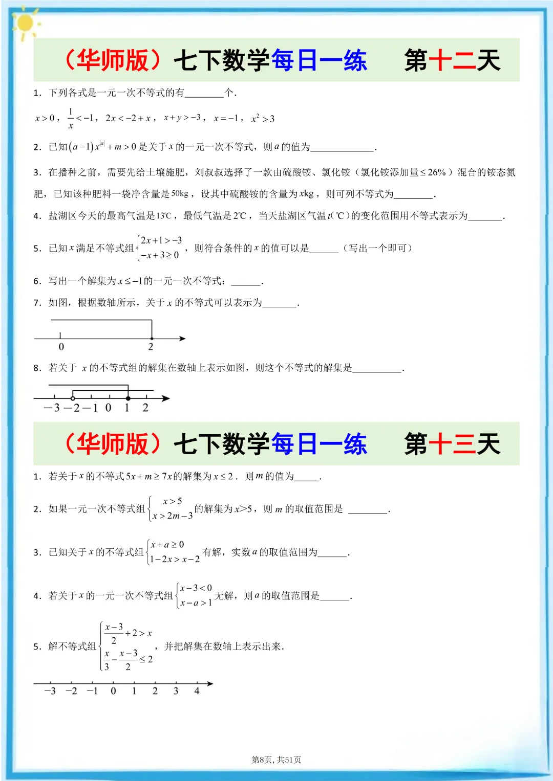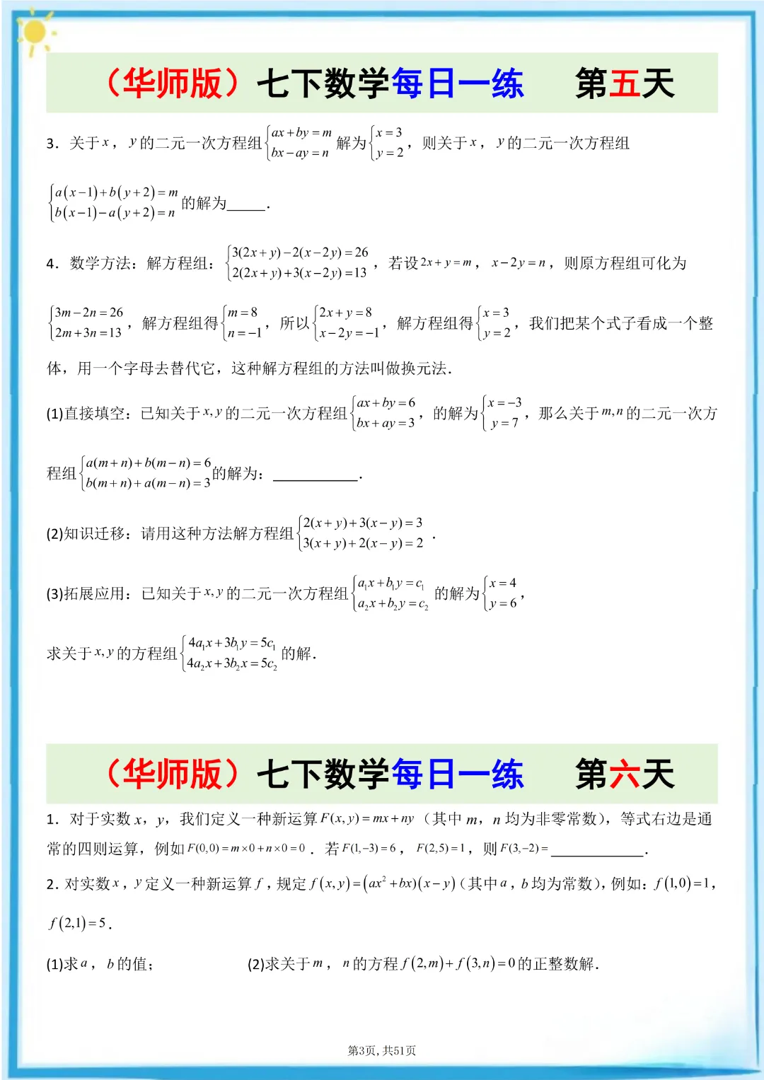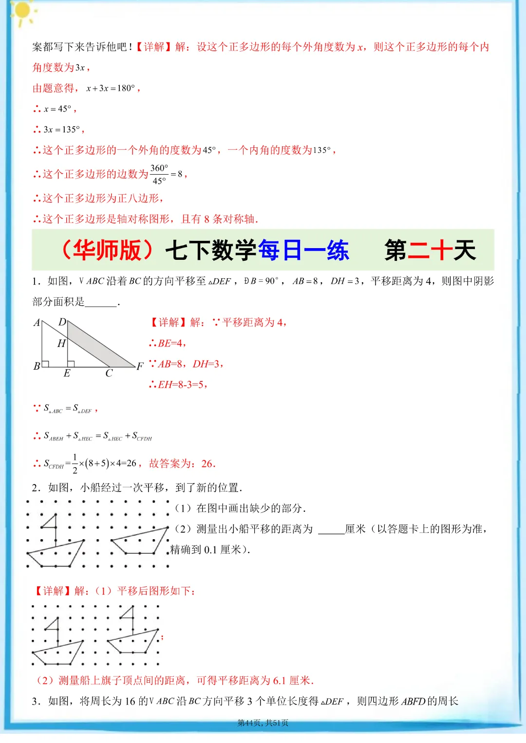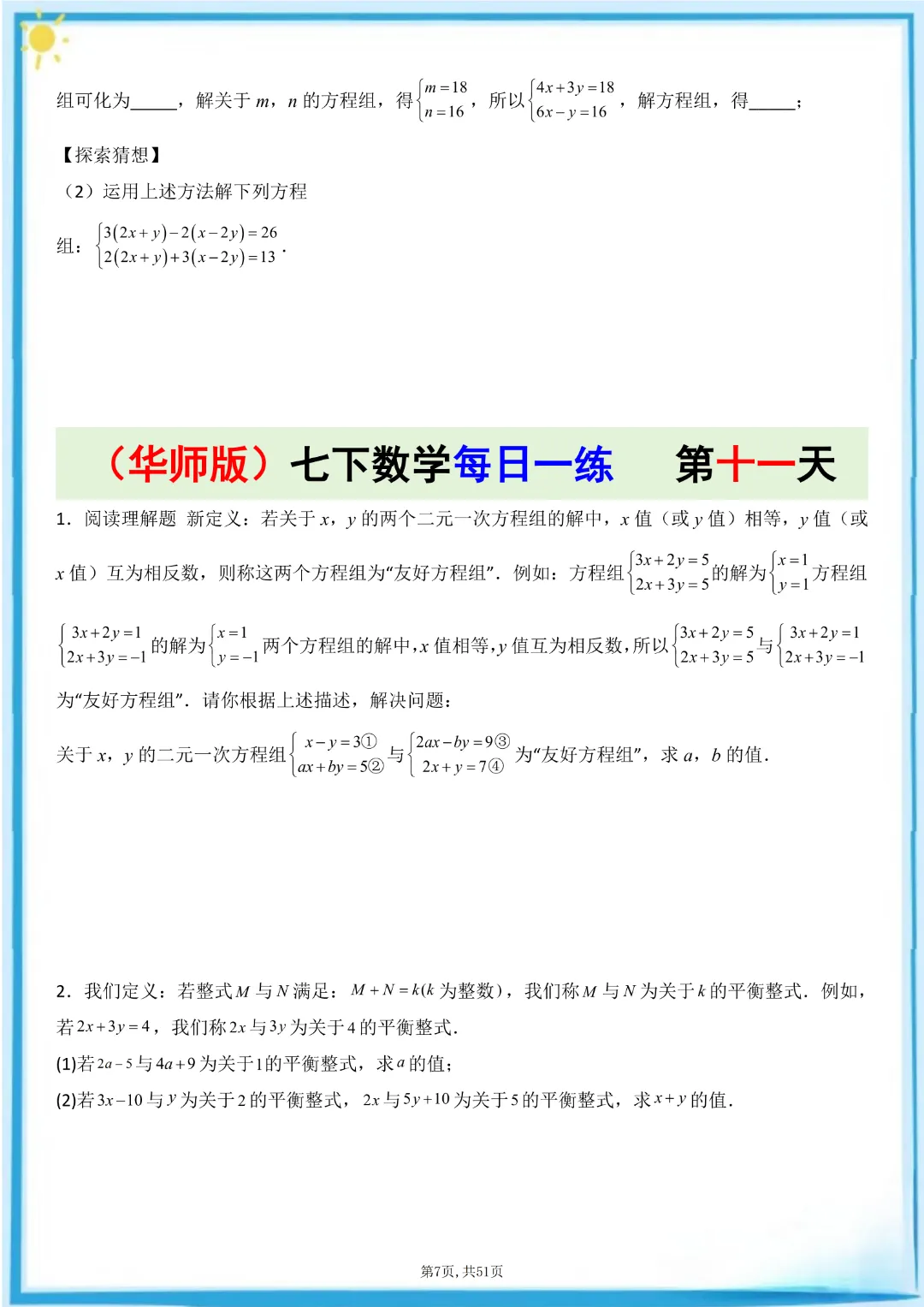 🌟今天给家长们分享的是:26春七年级下册数学【华东师大版】每日一练附解析 完整高清电子版可打印
