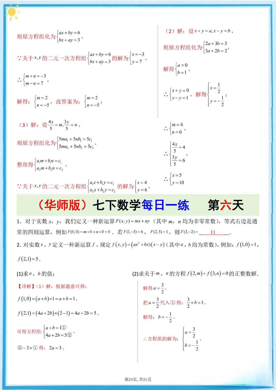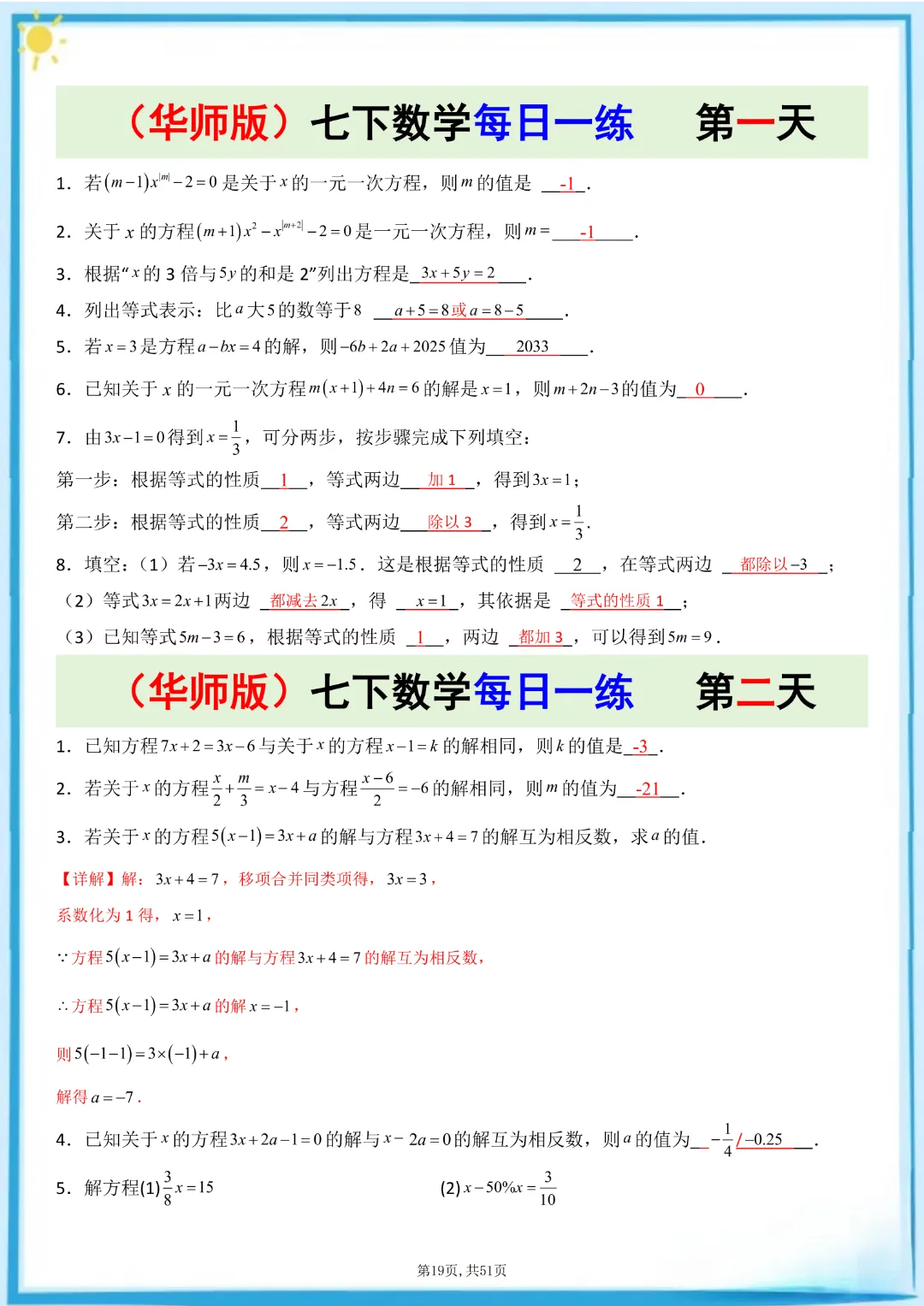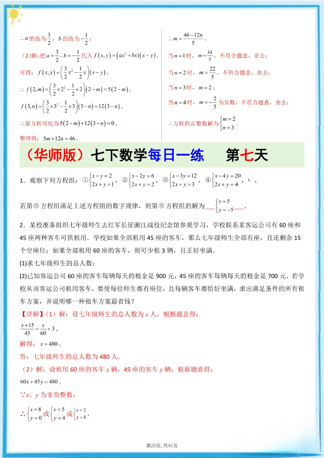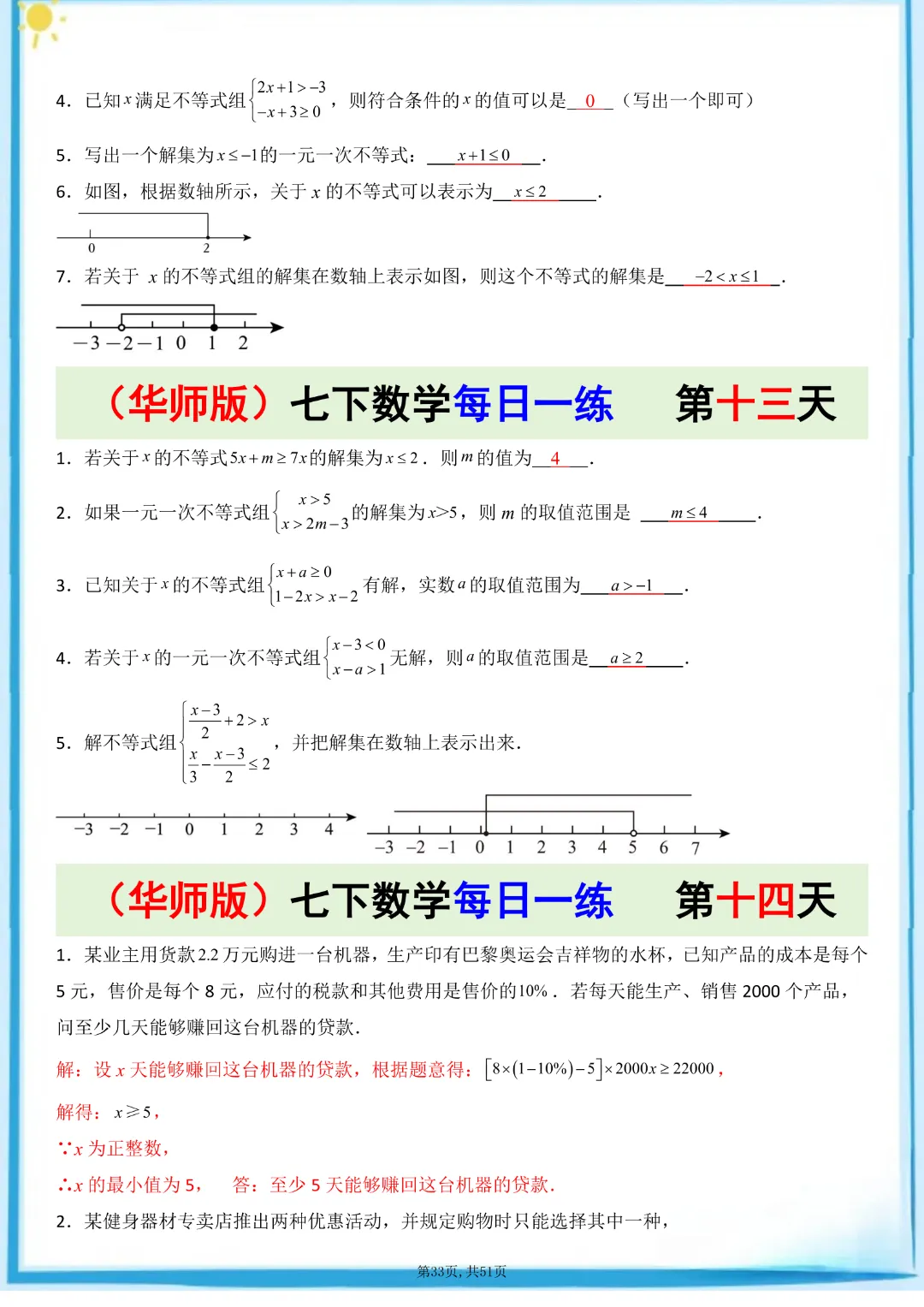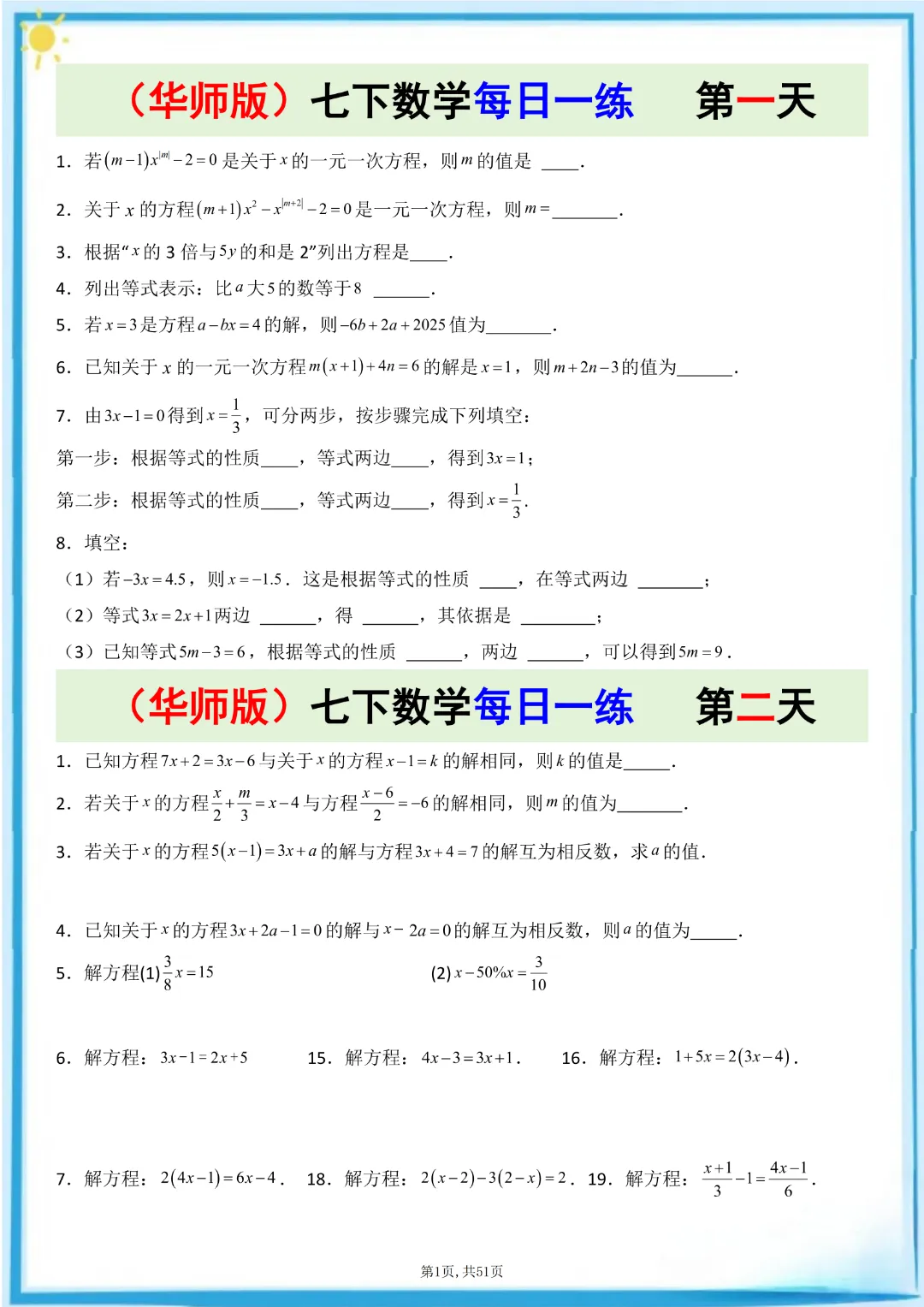 🌟今天给家长们分享的是:26春七年级下册数学【华东师大版】每日一练附解析 完整高清电子版可打印