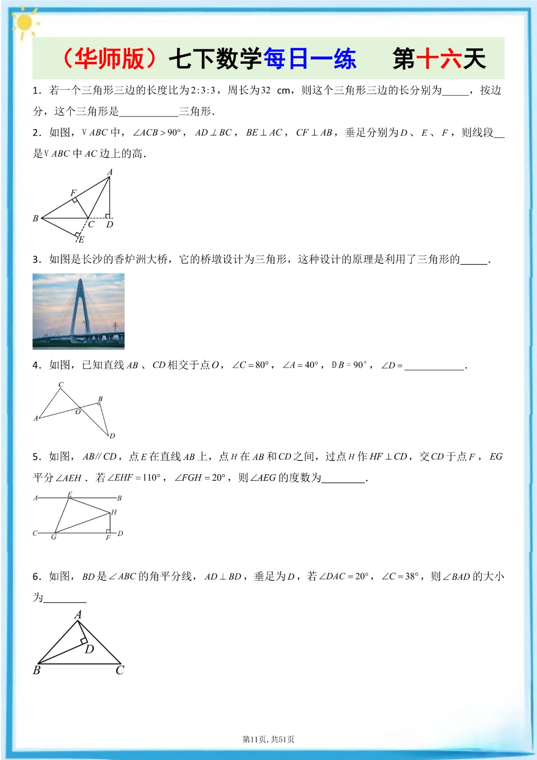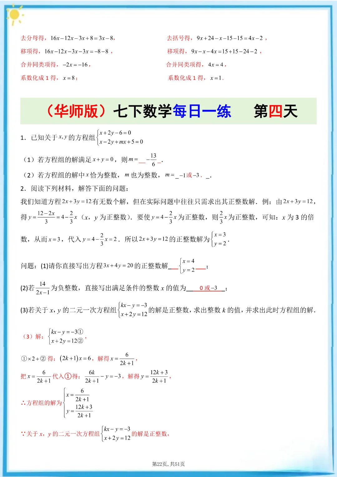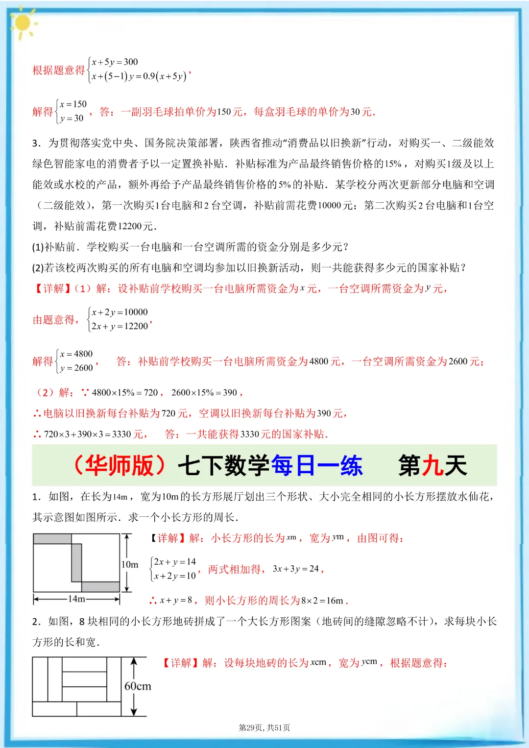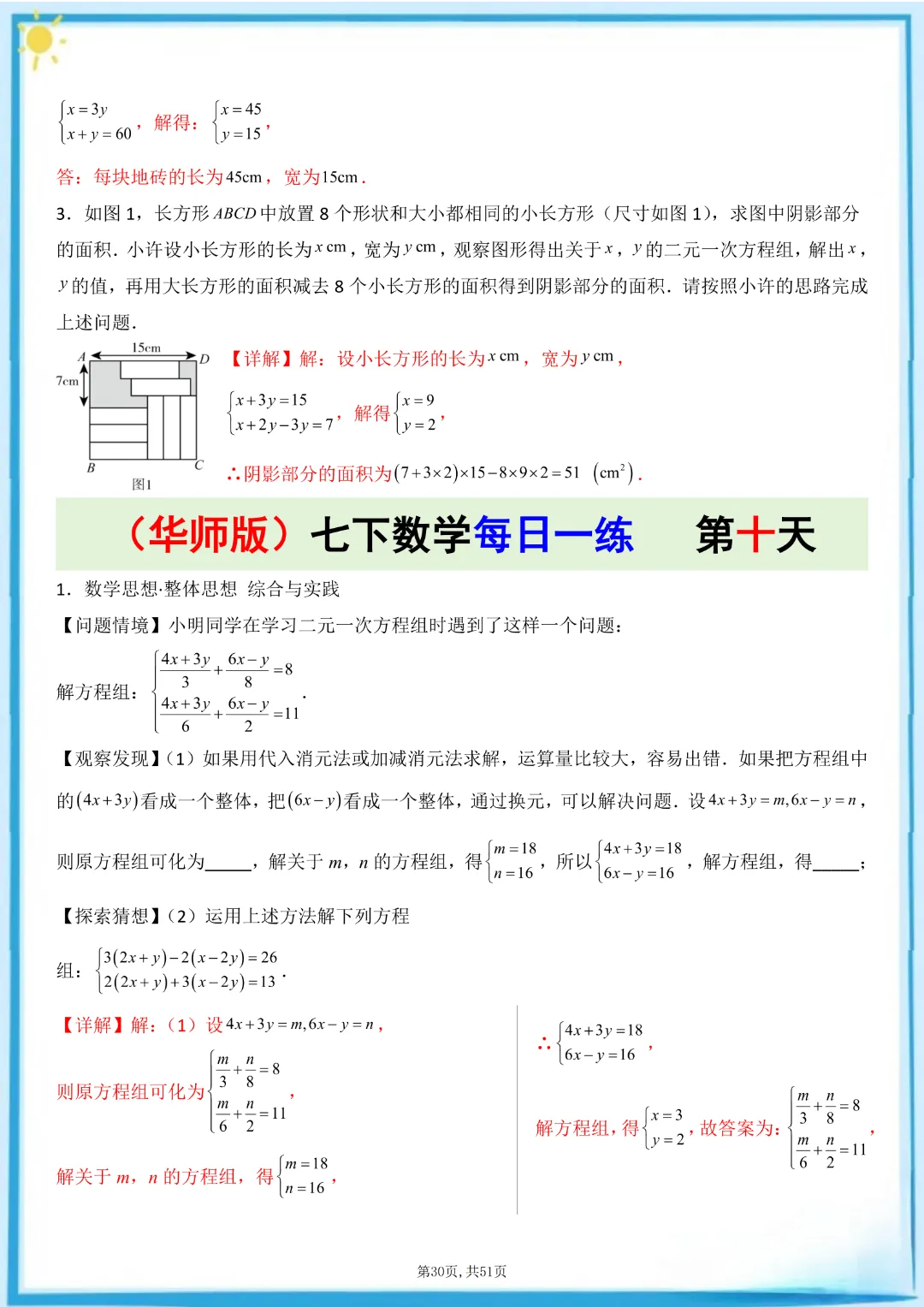 🌟今天给家长们分享的是:26春七年级下册数学【华东师大版】每日一练附解析 完整高清电子版可打印
