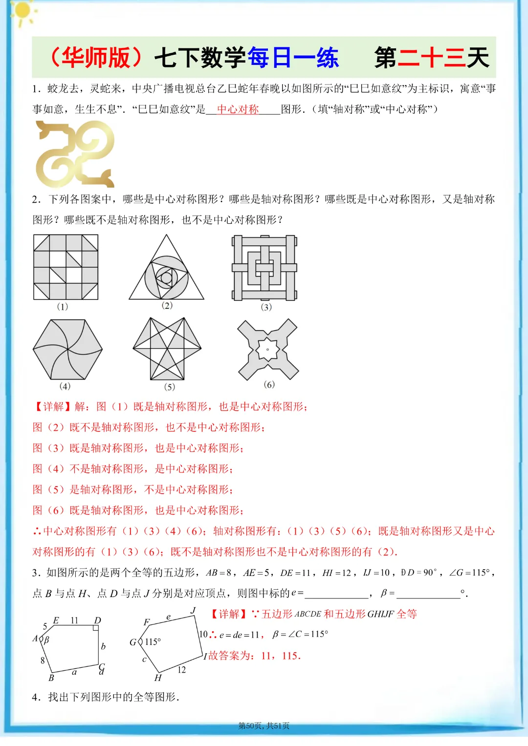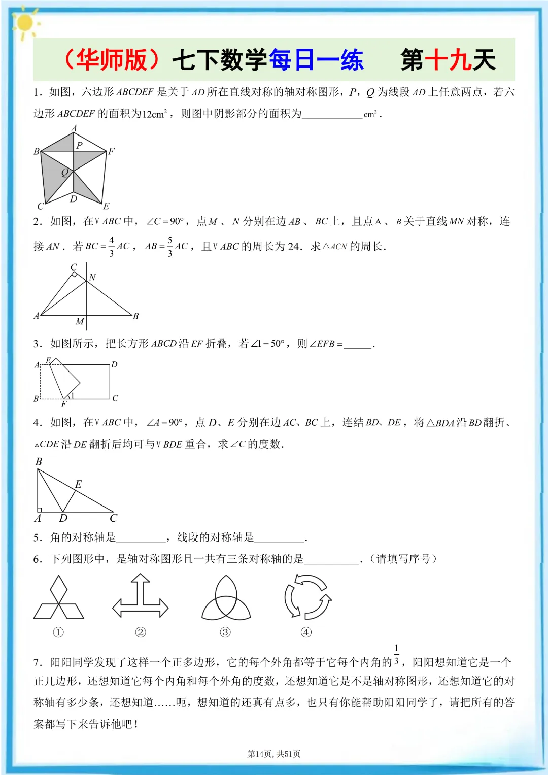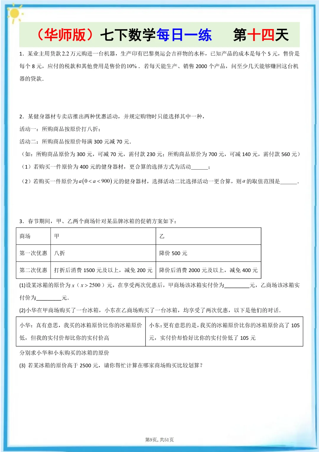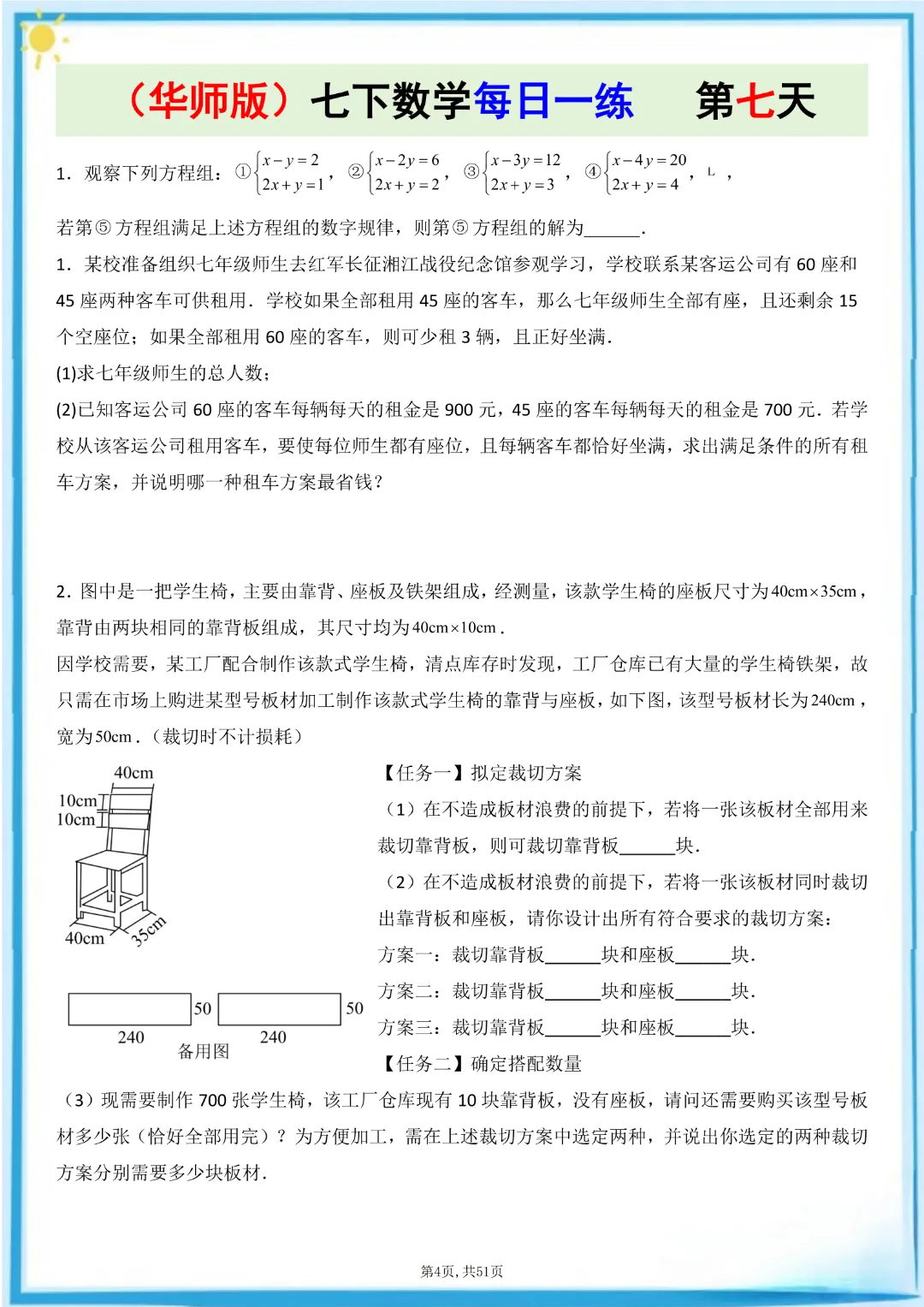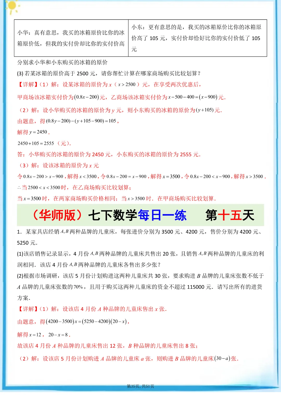 🌟今天给家长们分享的是:26春七年级下册数学【华东师大版】每日一练附解析 完整高清电子版可打印