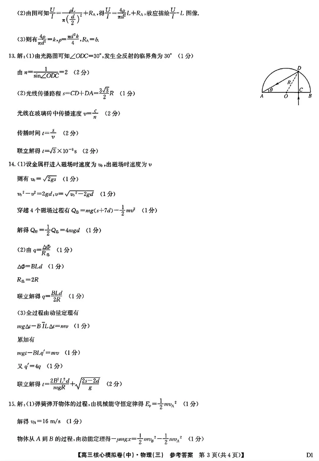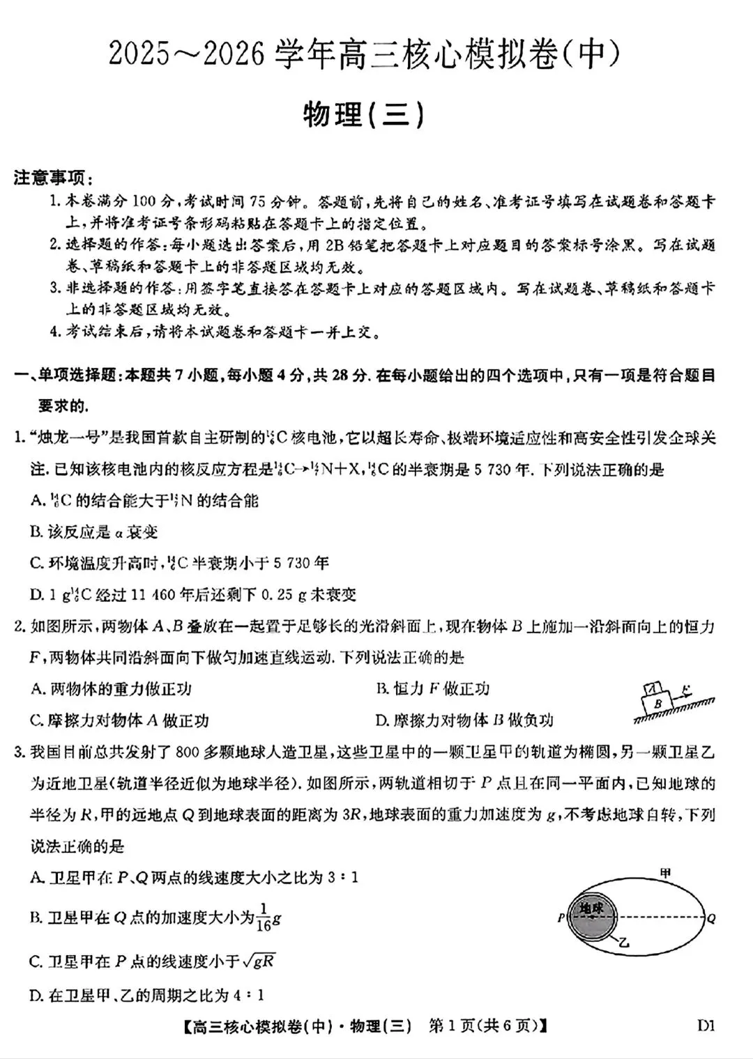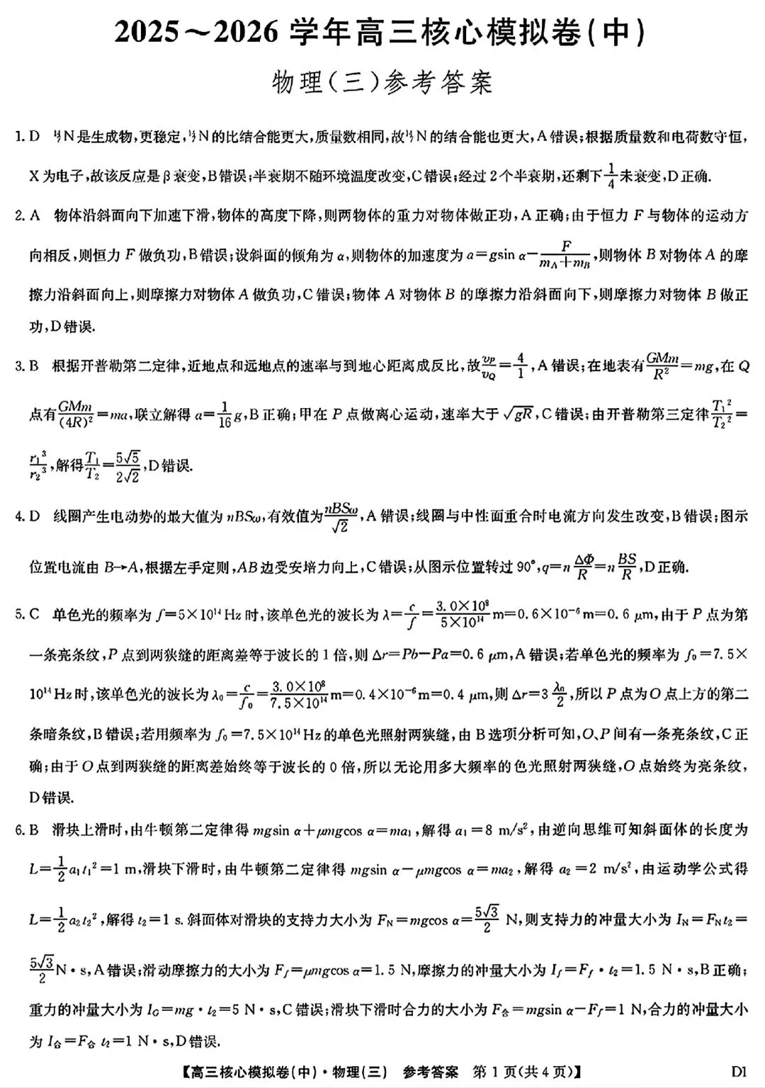 【文末可下载】九师联盟2025-2026学年高三核心模拟卷(中)物理(三)