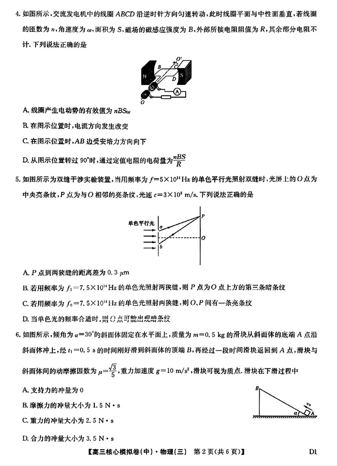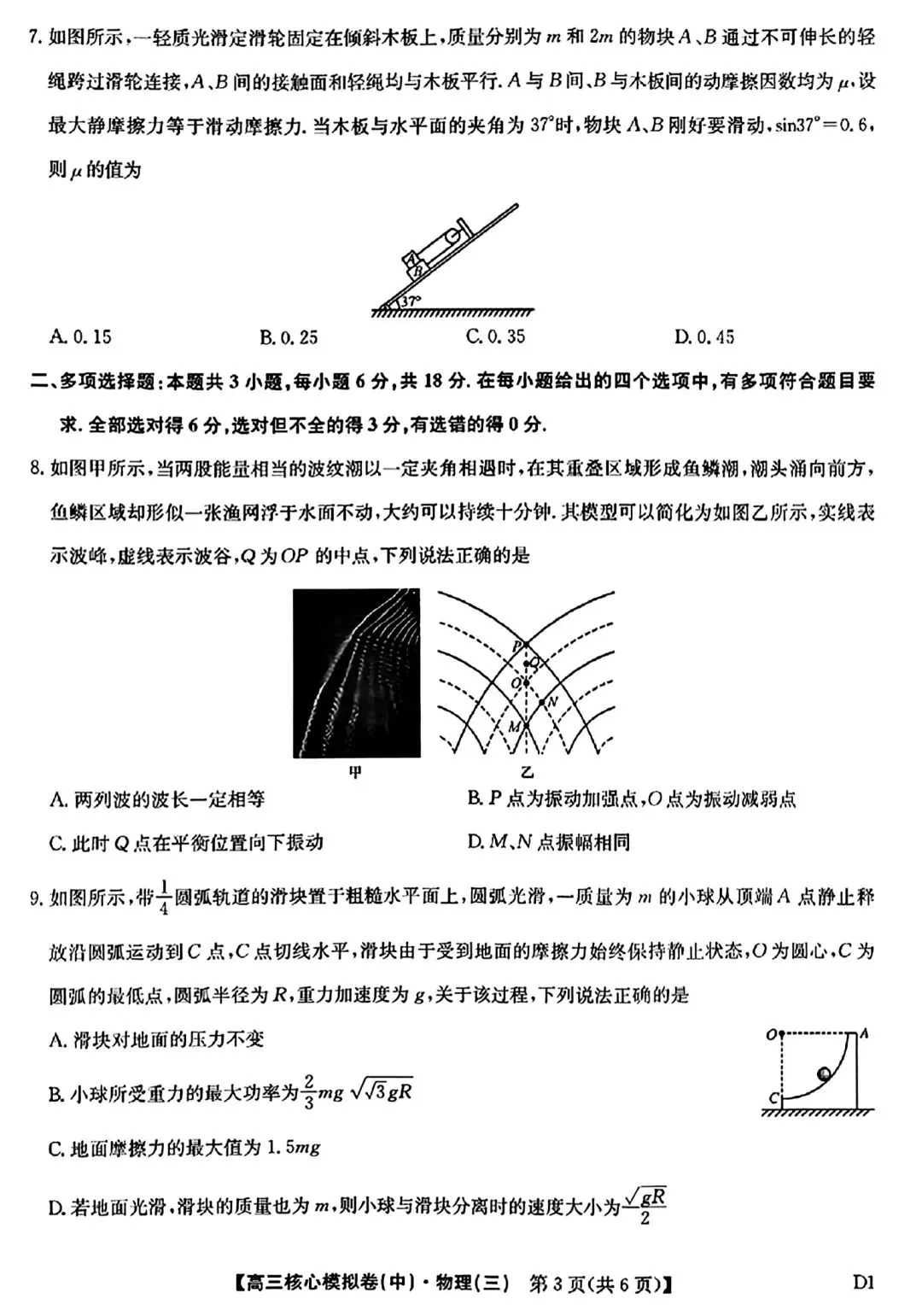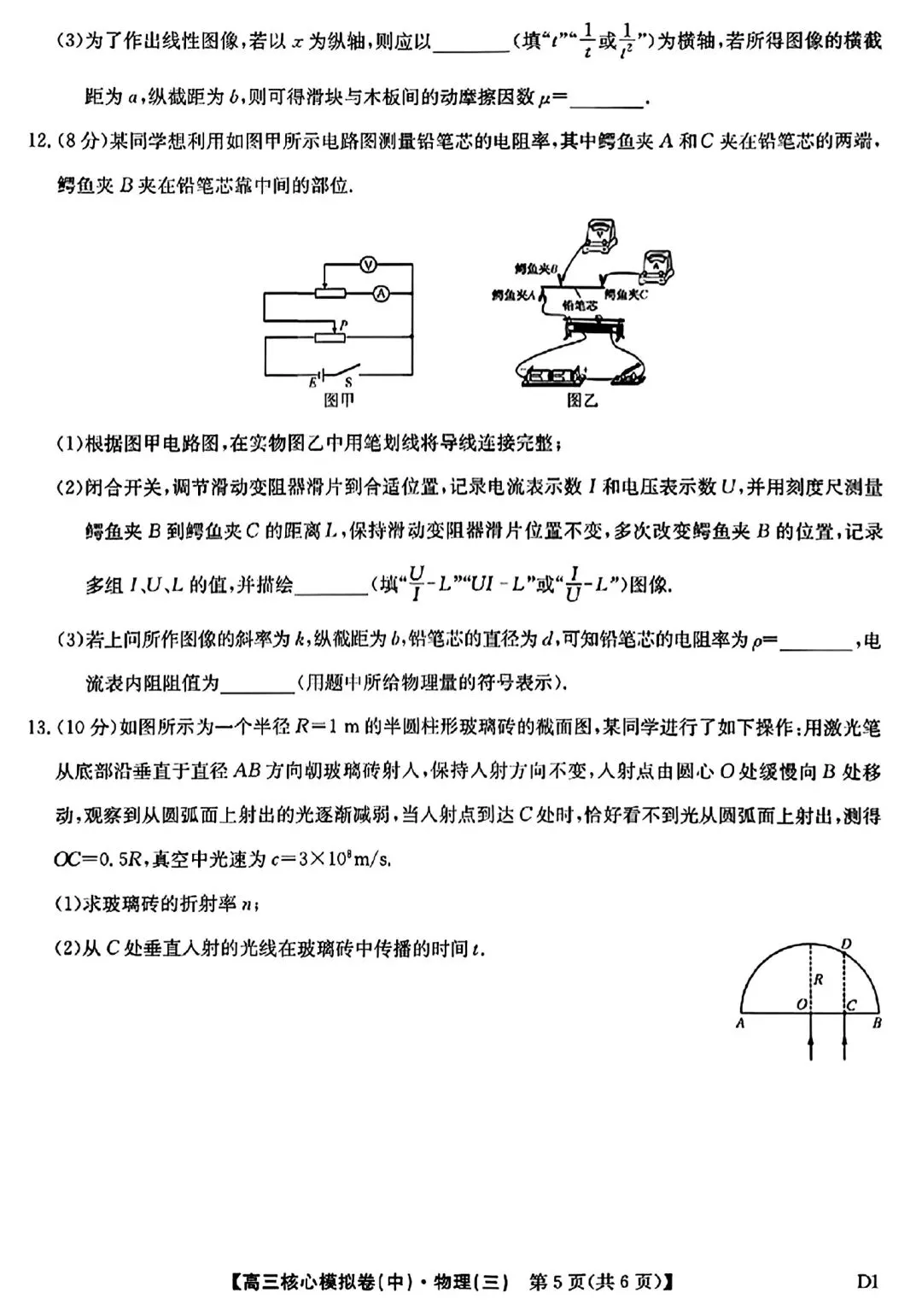【文末可下载】九师联盟2025-2026学年高三核心模拟卷(中)物理(三)