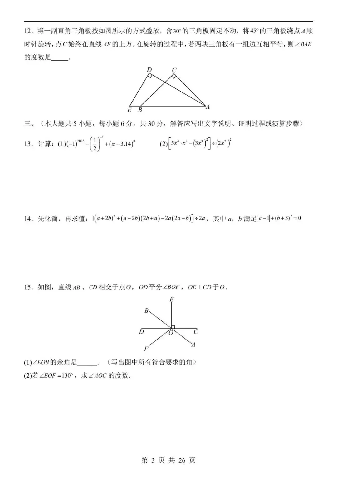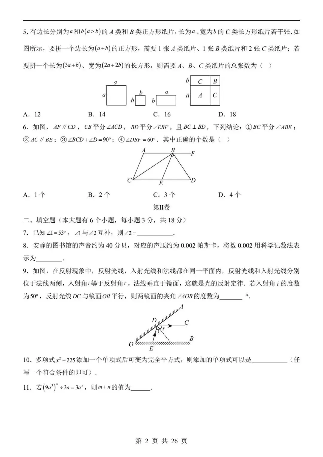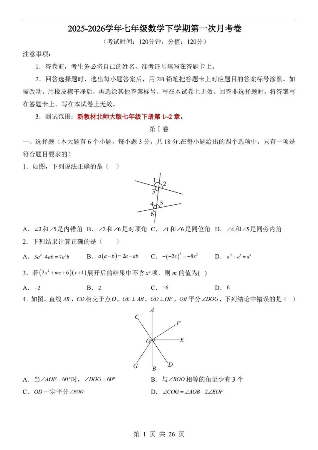 2026春北师版七年级下册数学《第一次月考测试卷》(含答案)| 完整可打印