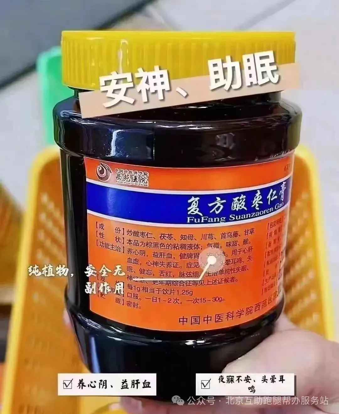 💡 用户口碑:复购率超80%在北京电视台《养生堂》栏目推荐后,复方酸枣仁膏一度断货。用户评价:“比安眠药温和,比褪黑素管用”“喝完像给大脑做了SPA”。