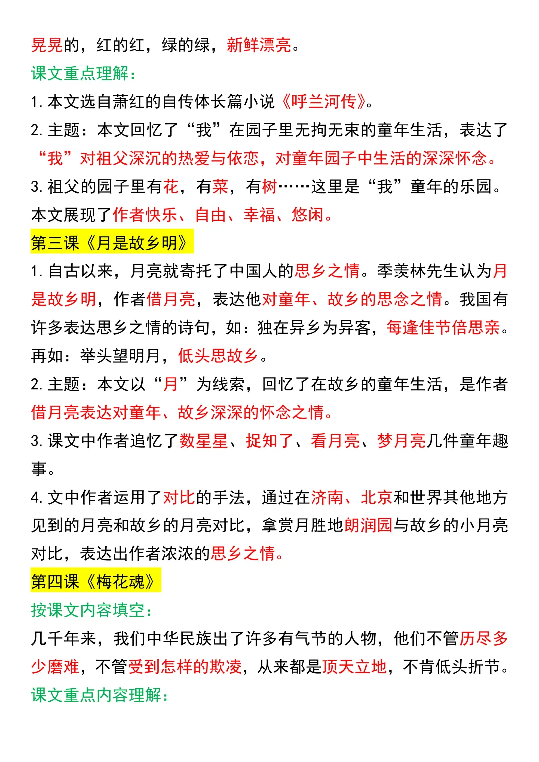 26春五年级下册语文课文知识点汇总|完整电子版可打印!